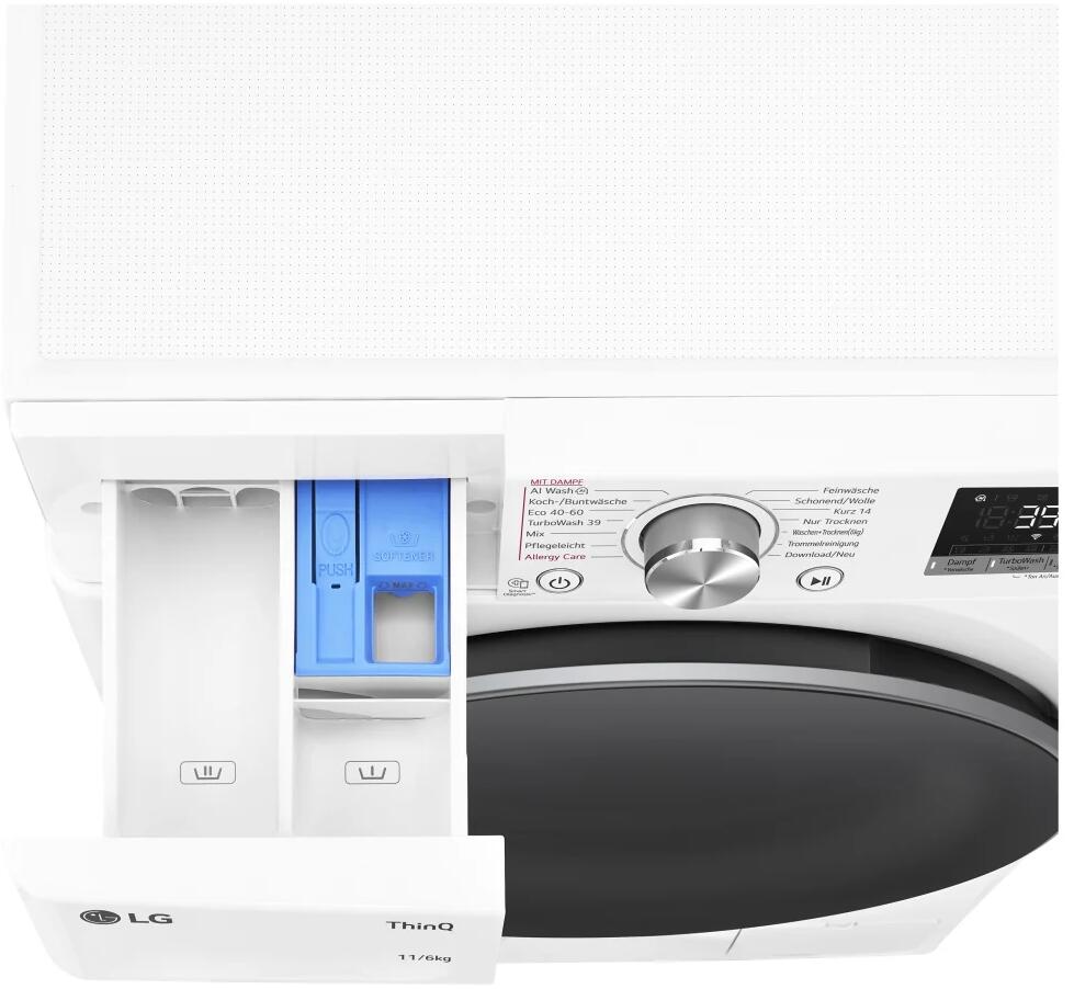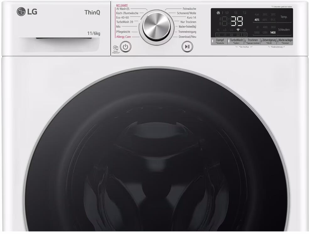 - Smart Features: Dank WLAN und ThinQ® App-Kompatibilität kannst du den Waschtrockner bequem von überall aus steuern.