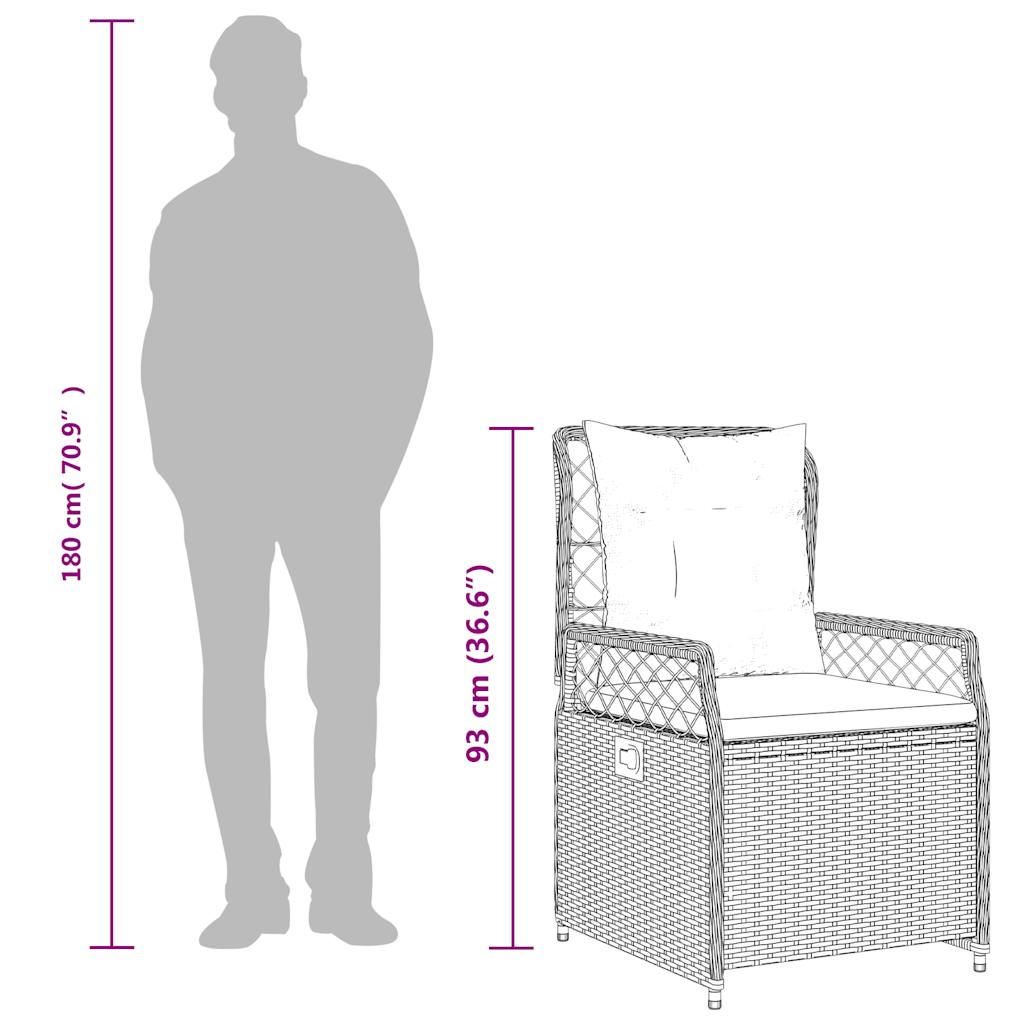Entspannen Sie sich und genießen Sie die Natur in diesen bequemen, verstellbaren Gartenstühlen! Langlebiges Material: PE-Rattan, auch Polyrattan genannt, ist ein robustes, pflegeleichtes Kunststoffmaterial, das natürlichem Rattan ähnelt. Es ist leicht, einfach zu reinigen und wird aufgrund seiner Langlebigkeit und Wetterbeständigkeit häufig für Gartenmöbel verwendet. Verstellbare Rückenlehne: Dieser Gartensitz hat einen Griff. Durch Ziehen am Griff können Sie die Rückenlehne in jede beliebige Position bringen und schnell wieder in die Ausgangsposition zurückbringen. Bequemes Sitzgefühl: Diese Gartenmöbel mit dick gepolsterten Kissen bieten ein komfortables Sitzgefühl. Abnehmbarer und waschbarer Bezug: Das Sitzkissen verfügt über einen abnehmbaren Bezug für einfaches Waschen und Pflegen. Robuster und stabiler Rahmen: Der pulverbeschichtete Stahlrahmen sorgt dafür, dass die Gartenmöbel robust und stabil für den täglichen Gebrauch im Freien sind. Gut zu wissen:Damit Ihre Gartenmöbel lange schön bleiben, empfehlen wir Ihnen, sie mit einer wasserdichten Abdeckung zu schützen.