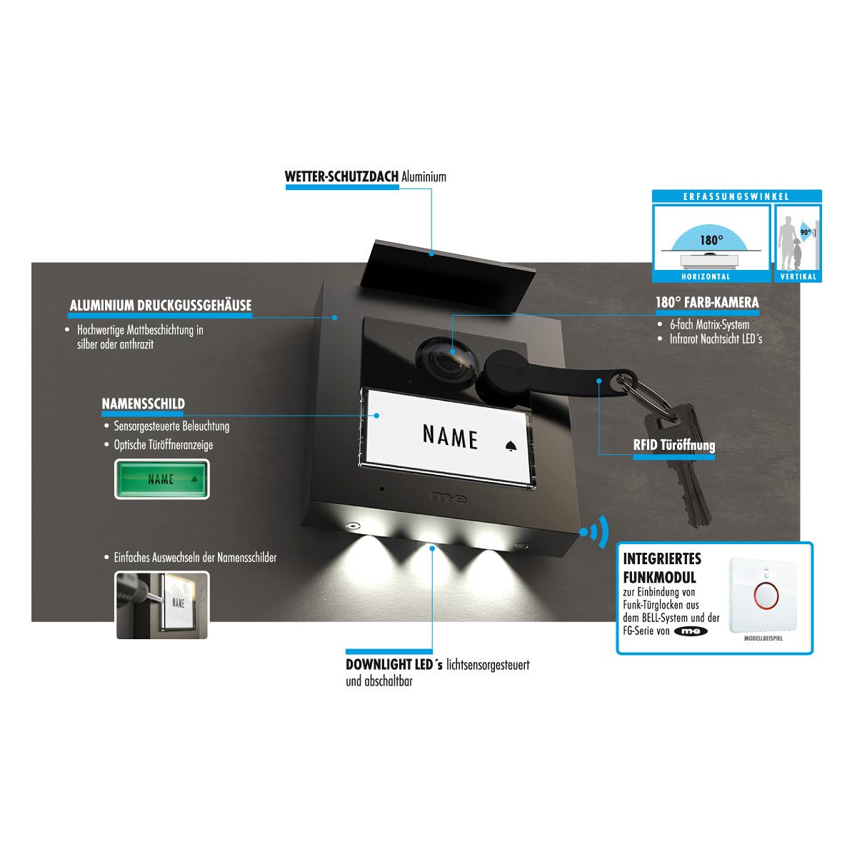 VISTADOOR Video Außenstation RFID, ALUGEHÄUSE, 1-Familienhaus für Aufputzmontage (AP), in Farbe anthrazit