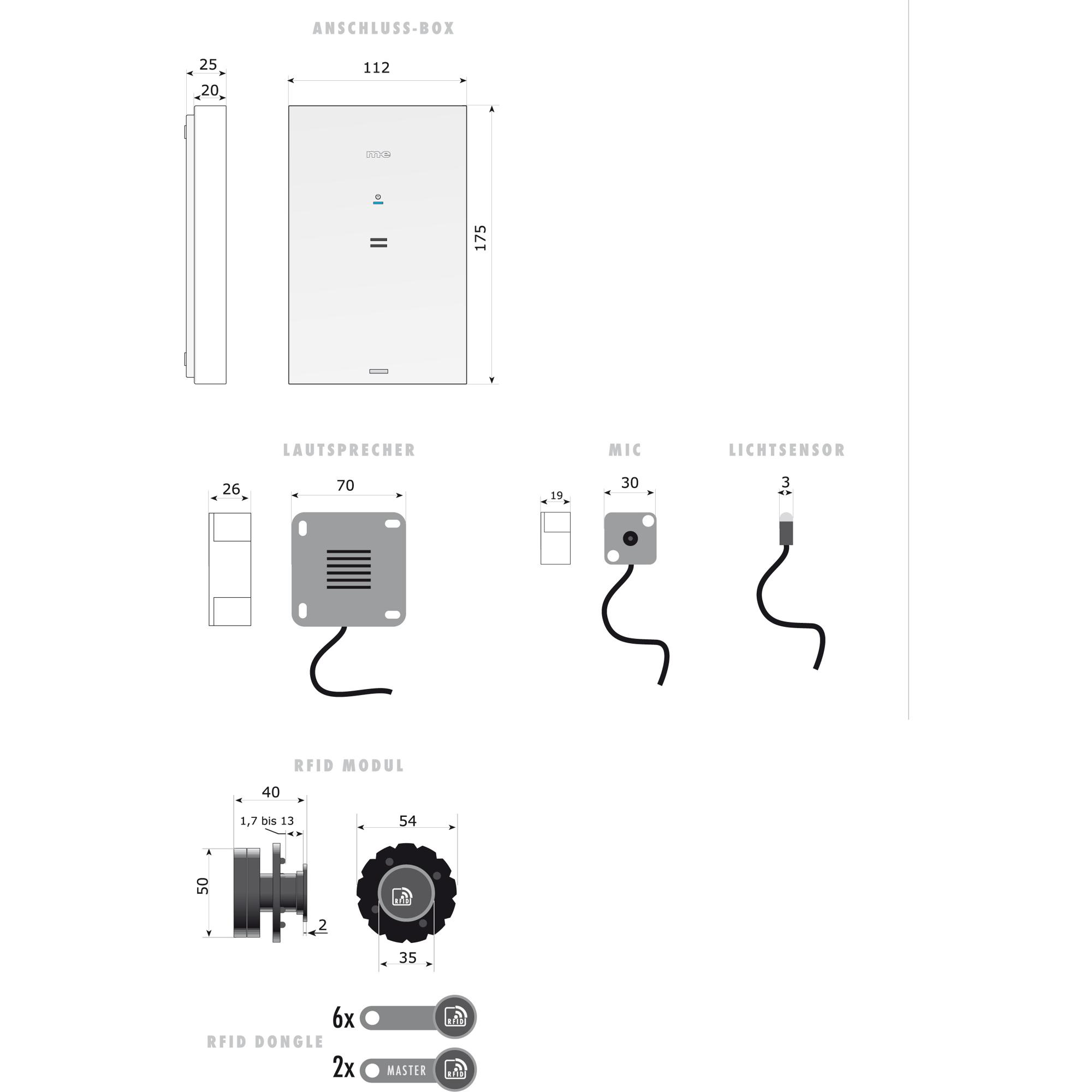 - Anschlussbox: 112 x 174 x 25mm BxHxT