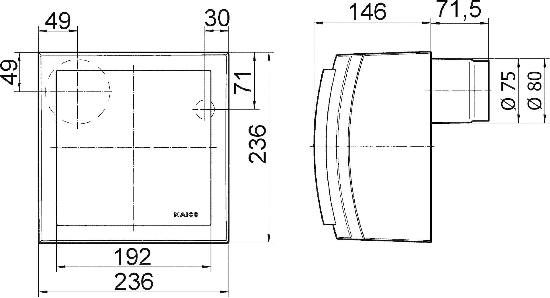 Alle MAICO ER-Geräte entsprechen der Schutzart IP X5 und können somit im Bereich 1 nach DIN VDE 0100-701, auch bei Strahlwasser, eingebaut werden. Details siehe Planungshinweise.