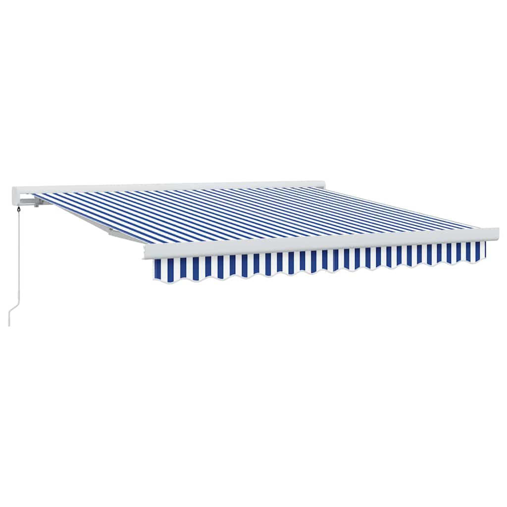 Gestalte deinen Außenbereich mit der vidaXL Manuelle einziehbaren Markise neu. Sie ist praktisch und einfach zu bedienen und hat ein klassisches blau-weiß gestreiftes Design, das stylisch aussieht und dir den nötigen Schatten bietet. Die Markise ist aus wasserabweisendem und UV-beständigem Stoff und schützt dich vor der Sonne. Das stabile pulverbeschichtete Metallgestell sorgt dafür, dass sie lange hält - eine super Wahl für jeden Garten oder jede Terrasse.