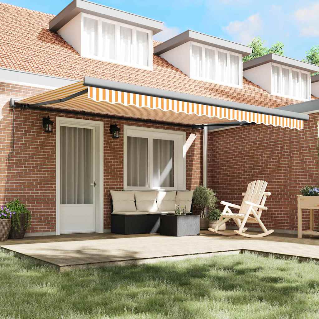 Entdecke die vidaXL Manuelle Einziehbare Markise, die Stil und Funktionalität für deine Außenbereiche vereint. Ihr modernes Design passt perfekt zu jedem Balkon oder jeder Terrasse, und die hochwertigen Materialien sorgen dafür, dass sie lange hält. Mit dem glatten, gestreiften Stoff in Orange und Weiß sieht diese Markise nicht nur super aus, sondern ist auch robust gegen Wasser, UV-Strahlen und Verblassen. Die verstellbaren Arme und der manuelle Einziehmechanismus machen es dir leicht, deinen Schatten anzupassen.