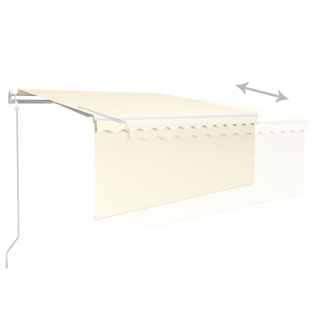 Schaffe einen angenehmen und kühlen Platz in deinem Außenbereich mit dieser einziehbaren Markise! Mit einem rostfreien, pulverbeschichteten Aluminiumrahmen ausgestattet, ist diese Outdoor-Markise leicht und dennoch robust. Der Markisenstoff besteht aus hochdichtem Polyester mit PU-Beschichtung, das UV-beständig und wasserfest ist. Darüber hinaus können Winkel und Höhe an Ihre spezifischen Anforderungen angepasst werden. Mit der mitgelieferten Fernbedienung lässt sich die automatisch einziehbare Markise einfach öffnen und einfahren. Auch mit der langen Handkurbel kann die Markise gesteuert werden. Sie ist auch mit einem Windsensor ausgestattet, der Ihre Markise an windigen Tagen automatisch schließt. Zudem sorgen die LED-Leuchten für energiesparende Beleuchtung am Abend. Der Volant schützt Sie vor UV-Strahlen und schafft Privatsphäre.