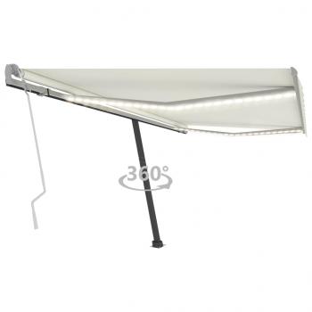 Schaffe einen angenehmen und kühlen Platz in deinem Außenbereich mit dieser einziehbaren Markise! Mit einem rostfreien, pulverbeschichteten Aluminiumrahmen ausgestattet, ist diese Outdoor-Markise leicht und dennoch robust. Der Markisenstoff besteht aus hochdichtem Polyester mit PU-Beschichtung, das UV-beständig und wasserfest ist. Der Winkel und die Höhe der Markise lassen sich an deine Bedürfnisse anpassen. Du kannst diesen Sonnenschutz mittels der langen Kurbel leicht ein- und ausfahren. Darüber hinaus sorgen die solarbetriebenen LED-Leuchten im Dunkel für eine energiesparende Beleuchtung. Der Standfuß kann um 360 Grad gedreht werden und bietet dadurch höchste Flexibilität.