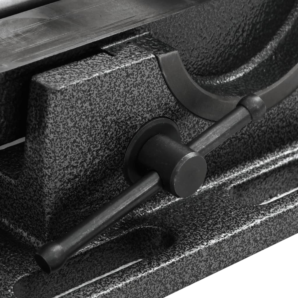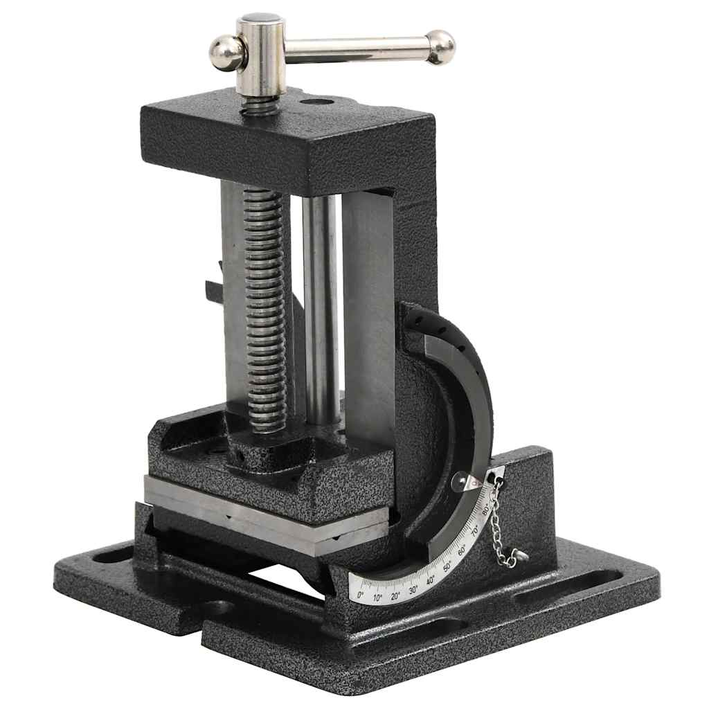Dieser Schraubstock kann bis um 90 Grad gekippt werden und ist robust konstruiert. Dank seiner hervorragenden Spannkraft bewegt sich der Schraubstock beim Bohren oder Fräsen nicht. Hergestellt aus Gusseisen, ist der Schraubstock stark und robust. Dieser Schraubstock ist dank einem Neigungswinkel, der zwischen 0 und 90 Grad einstellbar ist, kippbar. Mittels eines Sicherungsstifts an der Kette, können Sie ihn jeden 15 Grad arretieren. Dieses Gerät verfügt auch über eine stabile Basis, die einfach an Ihrer Werkbank montiert werden kann. Es ist kompakt und leicht, wodurch es für auch den mobilen Einsatz geeignet ist.