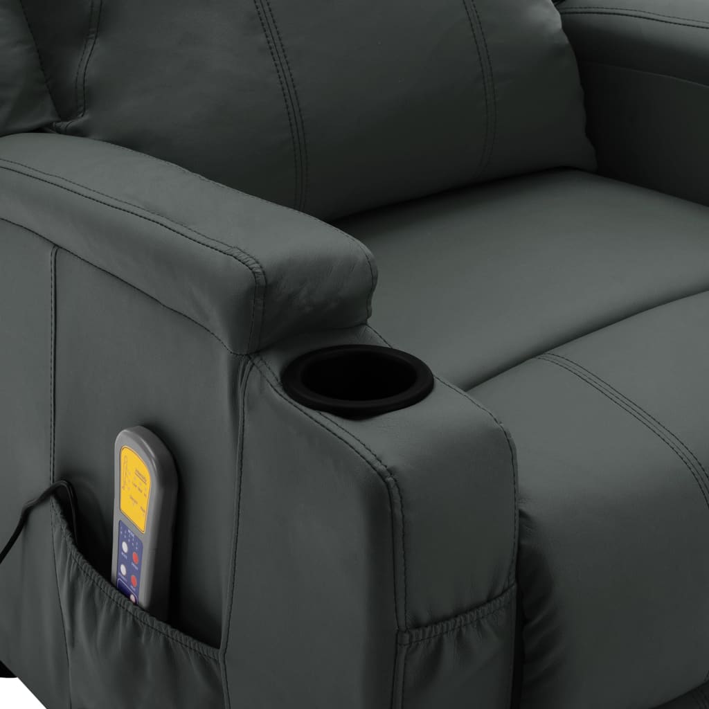 Lehne dich zurück und entspanne dich in diesem äußerst bequemen Massagesessel! Manuelle Liegefunktion: Der Sessel kann manuell in 3 Positionen verstellt werden, so dass die Rückenlehne und der Fußteil je nach Bedarf eingestellt werden können.Vibrationsfunktion: Mit den 6 Massagepunkten kann man eine gezielte Massage genießen. Außerdem ermöglicht die mitgelieferte Handsteuerung die Auswahl verschiedener Massageprogramme. Die Massagefunktion wird über den USB-Anschluss mit Strom betrieben, aber das zugelassene 5V-USB-Netzteil ist nicht im Lieferumfang enthalten.Bequemes Sitzerlebnis: Der dick gepolsterte Sitz, die Rückenlehne und die breiten, mit Kunstleder bezogenen Armlehnen sorgen für ein behagliches und angenehmes Sitzgefühl. Künstliches Leder ist ein äußerst langlebiges Material. Es ist schmutzabweisend und lässt sich mit einem feuchten Tuch einfach reinigen. Durch die glatte Oberfläche weist es die luxuriöse Schönheit von Echtleder auf.Solider und stabiler Rahmen: Der Rahmen aus Holz und Metall sorgt für eine solide Struktur und hohe Stabilität. Dieser TV-Sessel ist bequem und langlebig.