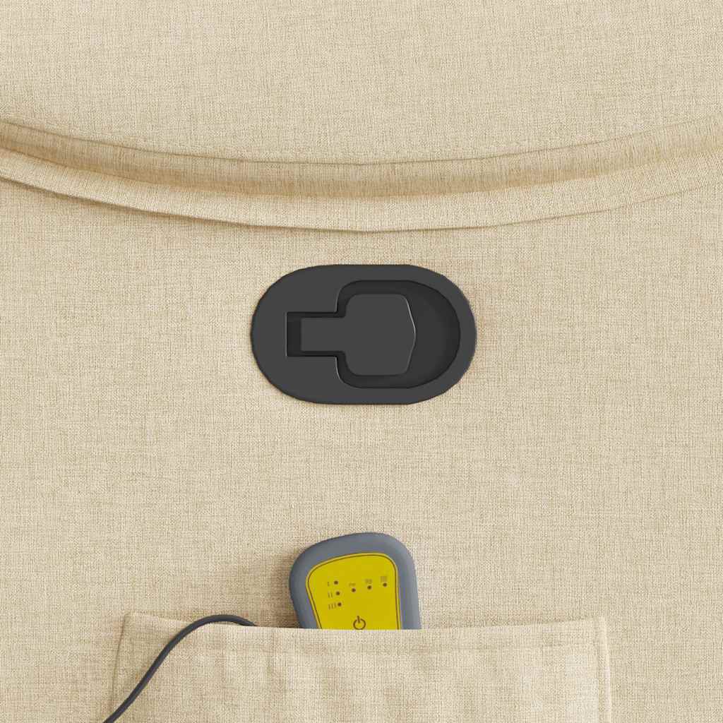 Lehne dich zurück und entspanne dich in diesem äußerst bequemen Massagesessel! Manuelle Liegefunktion: Dieser Ruhesessel lässt sich mittels des Griffs an der rechten Seite verstellen. So kannst du das Fußteil und die Rückenlehne manuell in jede beliebige Position bringen, um höchsten Komfort zu genießen. Die Rückenlehne lässt sich max. 135 Grad nach hinten verstellen. Durch einfaches Ziehen lässt sie sich schnell wieder in die ursprüngliche Position bringen.Vibrationsfunktion: Mit den 6 Massagepunkten kann man eine gezielte Massage genießen. Außerdem ermöglicht die mitgelieferte Handsteuerung die Auswahl verschiedener Massageprogramme. Die Massagefunktion wird über den USB-Anschluss mit Strom betrieben, aber das zugelassene 5V-USB-Netzteil ist nicht im Lieferumfang enthalten.Bequemes Sitzerlebnis: Die dick gepolsterte Sitzfläche, die Rückenlehne und die breiten Armlehnen sorgen für ein behagliches und wohliges Sitzgefühl. Der Bezug aus Stoff weist eine schlichte und saubere Optik auf und ist auch atmungsaktiv und langlebig.Praktische Seitentasche: Dieser Sessel verfügt über eine Seitentasche, in der du deine Fernbedienung oder andere wichtige Sachen griffbereit aufbewahren kannst.Solider und stabiler Rahmen: Der Rahmen aus Holz und Metall sorgt für eine solide Struktur und hohe Stabilität. Dieser TV-Sessel ist bequem und langlebig.