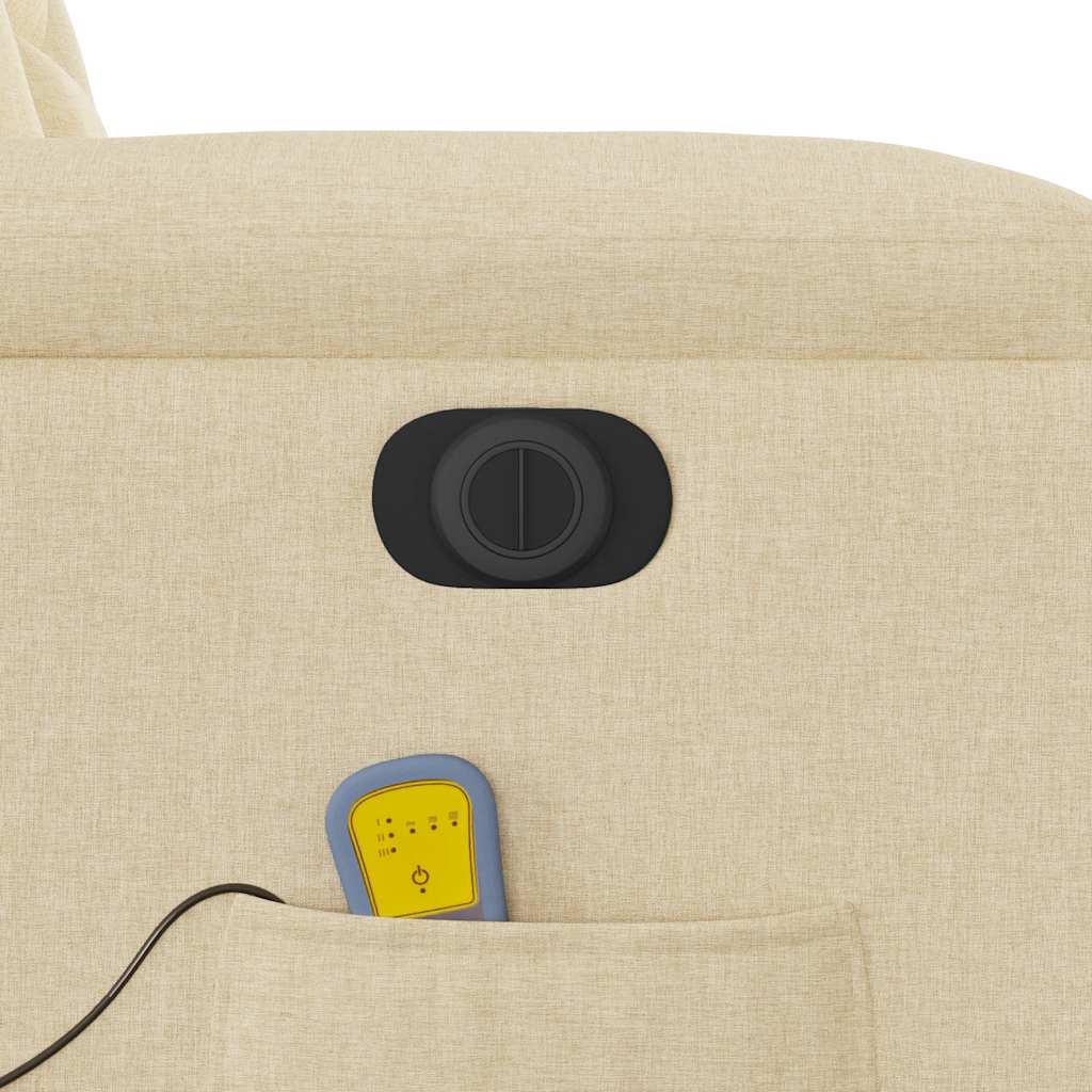 Lehne dich zurück und entspanne dich in diesem äußerst bequemen Massagesessel! Elektrische Liegefunktion: Dieser Relaxsessel ist mit einem Elektromotor ausgestattet, der Fußstütze und Rückenlehne durch einfaches Drücken des seitlichen Knopfes automatisch in jede gewünschte Position bringt. Diese Funktion ermöglicht eine maximale Neigung von 135 Grad. Darüber hinaus lässt sich die Rückenlehne auf Knopfdruck automatisch in die ursprünglichen Position zurückbringen.Vibrationsfunktion: Dank der 6 Massagepunkte genießt du eine gezielte Massage. Zudem lassen sich verschiedene Massageprogramme über die mitgelieferte Handsteuerung auswählen. Die Massagefunktion wird über den USB-Anschluss betrieben, der eine zertifizierte 5-V-USB-Stromquelle erfordert (nicht im Lieferumfang enthalten).Bequemes Sitzerlebnis: Die dick gepolsterte Sitzfläche, die Rückenlehne und die breiten Armlehnen sorgen für ein behagliches und wohliges Sitzgefühl. Der Bezug aus Stoff weist eine schlichte und saubere Optik auf und ist auch atmungsaktiv und langlebig.Praktische Getränkehalter und Seitentasche: Dieser Sessel verfügt über zwei praktische Getränkehalter und eine Seitentasche, in der du deine Fernbedienung oder andere wichtige Sachen griffbereit aufbewahren kannst.Solider und stabiler Rahmen: Der Rahmen aus Holz und Metall sorgt für eine solide Struktur und hohe Stabilität. Dieser TV-Sessel ist bequem und langlebig.