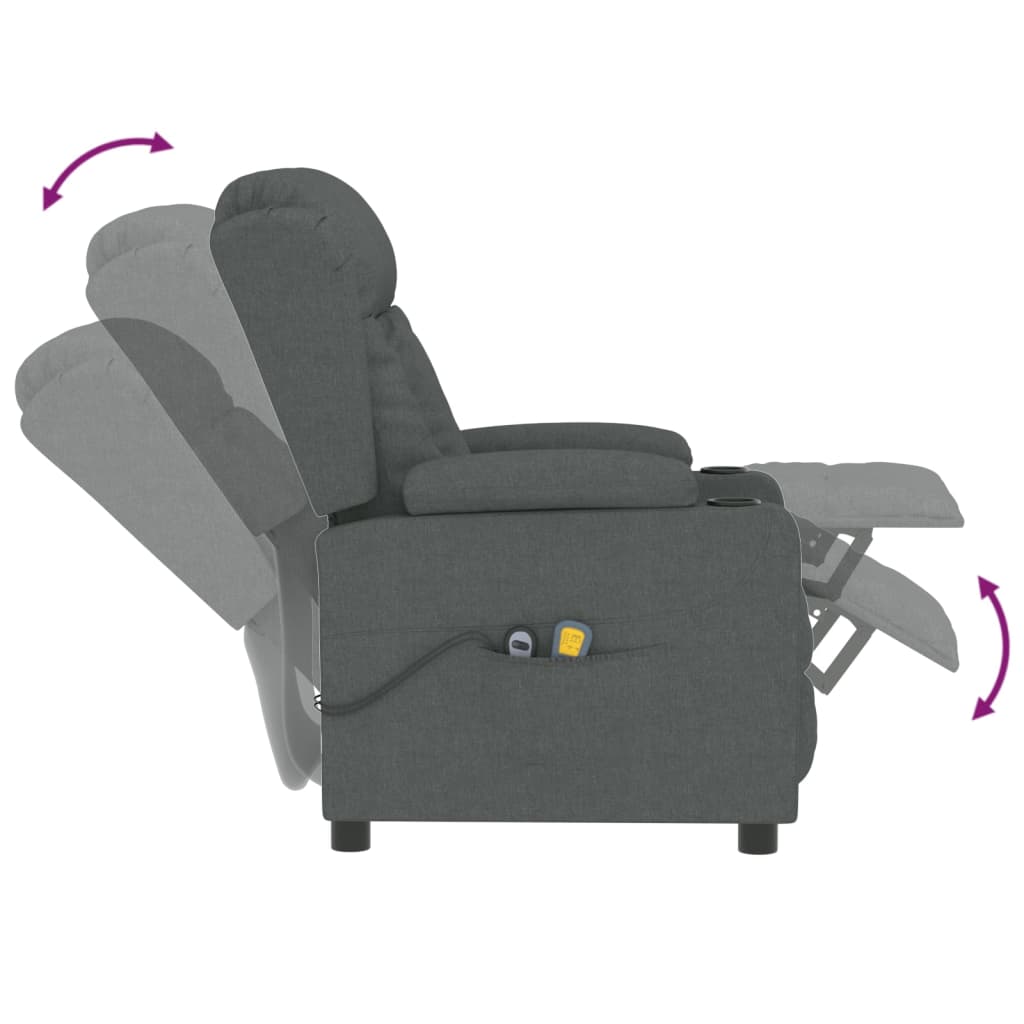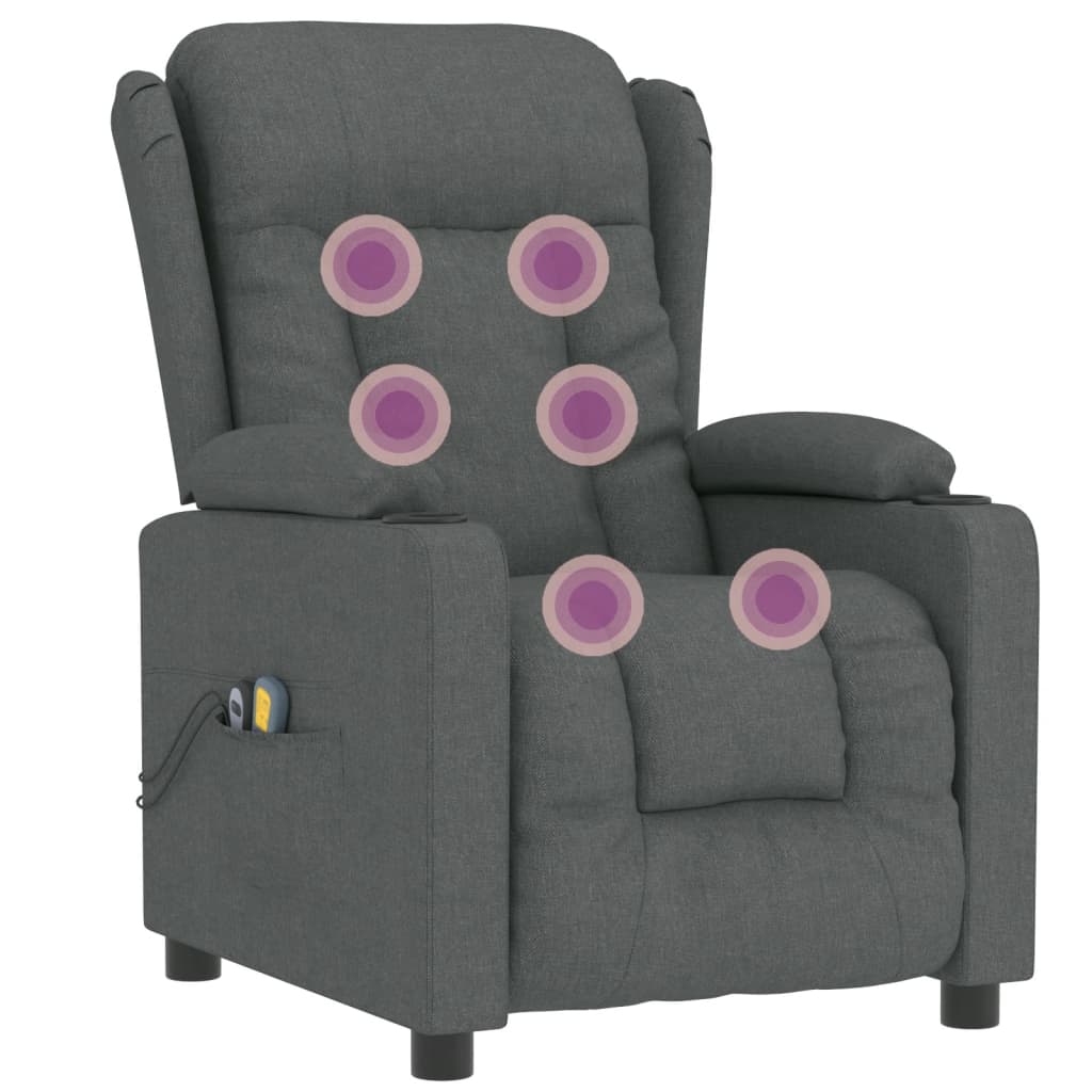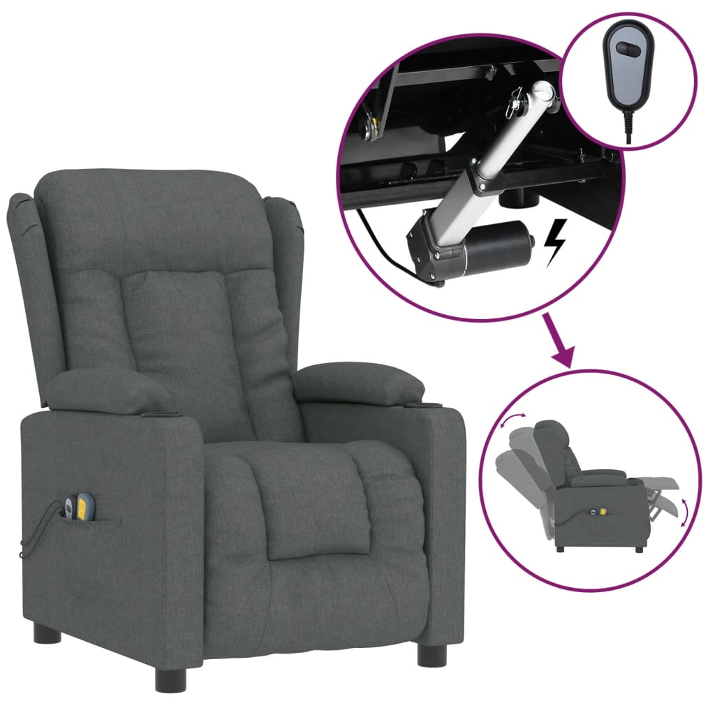 Lehne dich zurück und entspanne dich in diesem äußerst bequemen elektrischen Massagesessel! Elektrische Liegefunktion: Der Relaxsessel ist mit einem Elektromotor für die Liegefunktion ausgestattet. Er bietet 3 Liegepositionen und die Rückenlehne und das Fußteil lassen sich über die mitgelieferte 2-Tasten-Fernbedienung je nach Bedarf einstellen.Vibrationsfunktion: Mit den 6 Massagepunkten kann man eine gezielte Massage genießen. Außerdem ermöglicht die mitgelieferte Handsteuerung die Auswahl verschiedener Massageprogramme. Die Massagefunktion wird über den USB-Anschluss mit Strom betrieben, aber das zugelassene 5V-USB-Netzteil ist nicht im Lieferumfang enthalten. Durch die Heizfunktion werden Schmerzen an der Taille gelindert und die Blutzirkulation gefördert.Bequemes Sitzerlebnis: Die dick gepolsterte Sitzfläche, die Rückenlehne und die breiten Armlehnen sorgen für ein behagliches und wohliges Sitzgefühl. Der Bezug aus Stoff hat ein schlichtes und sauberes Aussehen, ist atmungsaktiv und langlebig.Solider und stabiler Rahmen: Der Rahmen aus Holz und Metall sorgt für eine solide Struktur und hohe Stabilität. Dieser TV-Sessel ist bequem und langlebig.