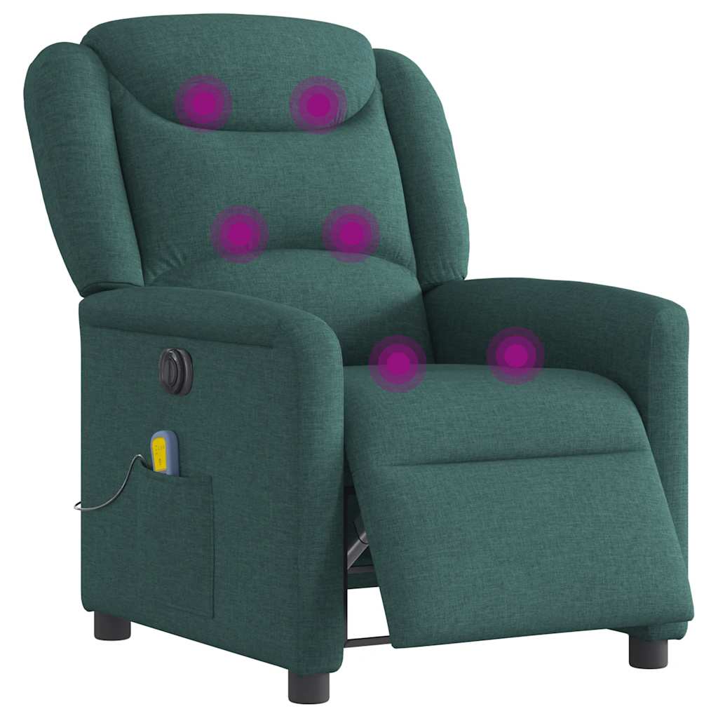 Lehne dich zurück und entspanne dich in diesem äußerst bequemen Massagesessel! Elektrische Liegefunktion: Dieser Relaxsessel ist mit einem Elektromotor ausgestattet, der Fußstütze und Rückenlehne durch einfaches Drücken des seitlichen Knopfes automatisch in jede gewünschte Position bringt. Diese Funktion ermöglicht eine maximale Neigung von 135 Grad. Darüber hinaus lässt sich die Rückenlehne auf Knopfdruck automatisch in die ursprünglichen Position zurückbringen.Vibrationsfunktion: Dank der 6 Massagepunkte genießt du eine gezielte Massage. Zudem lassen sich verschiedene Massageprogramme über die mitgelieferte Handsteuerung auswählen. Die Massagefunktion wird über den USB-Anschluss betrieben, der eine zertifizierte 5-V-USB-Stromquelle erfordert (nicht im Lieferumfang enthalten).Bequemes Sitzerlebnis: Die dick gepolsterte Sitzfläche, die Rückenlehne und die breiten Armlehnen sorgen für ein behagliches und wohliges Sitzgefühl. Der Bezug aus Stoff weist eine schlichte und saubere Optik auf und ist auch atmungsaktiv und langlebig.Praktische Seitentasche: Dieser Sessel verfügt über eine Seitentasche, in der du deine Fernbedienung oder andere wichtige Sachen griffbereit aufbewahren kannst.Solider und stabiler Rahmen: Der Rahmen aus Holz und Metall sorgt für eine solide Struktur und hohe Stabilität. Dieser TV-Sessel ist bequem und langlebig.