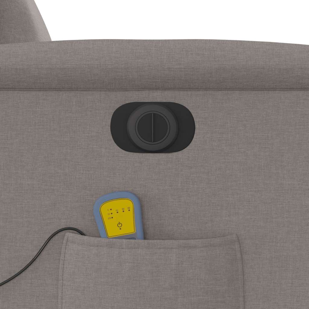 Lehne dich zurück und entspanne dich in diesem äußerst bequemen Massagesessel! Elektrische Liegefunktion: Dieser Relaxsessel ist mit einem Elektromotor ausgestattet, der Fußstütze und Rückenlehne durch einfaches Drücken des seitlichen Knopfes automatisch in jede gewünschte Position bringt. Diese Funktion ermöglicht eine maximale Neigung von 135 Grad. Darüber hinaus lässt sich die Rückenlehne auf Knopfdruck automatisch in die ursprünglichen Position zurückbringen.Vibrationsfunktion: Dank der 6 Massagepunkte genießt du eine gezielte Massage. Zudem lassen sich verschiedene Massageprogramme über die mitgelieferte Handsteuerung auswählen. Die Massagefunktion wird über den USB-Anschluss betrieben, der eine zertifizierte 5-V-USB-Stromquelle erfordert (nicht im Lieferumfang enthalten).Bequemes Sitzerlebnis: Die dick gepolsterte Sitzfläche, die Rückenlehne und die breiten Armlehnen sorgen für ein behagliches und wohliges Sitzgefühl. Der Bezug aus Stoff weist eine schlichte und saubere Optik auf und ist auch atmungsaktiv und langlebig.Praktische Seitentasche: Dieser Sessel verfügt über eine Seitentasche, in der du deine Fernbedienung oder andere wichtige Sachen griffbereit aufbewahren kannst.Solider und stabiler Rahmen: Der Rahmen aus Holz und Metall sorgt für eine solide Struktur und hohe Stabilität. Dieser TV-Sessel ist bequem und langlebig.