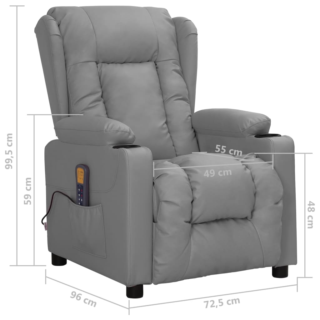 Lehne dich zurück und entspanne dich in diesem äußerst bequemen Massagesessel! Manuelle Liegefunktion: Der Sessel kann manuell in 3 Positionen verstellt werden, so dass die Rückenlehne und der Fußteil je nach Bedarf eingestellt werden können.Vibrationsfunktion: Die vorgestellten 6 Massagepunkte lassen Sie eine gezieltere Massage erleben. Zusätzlich können Sie mit der mitgelieferten Handsteuerung verschiedene Massageprogramme auswählen. Die Massagefunktion wird über den USB-Anschluss mit Strom versorgt, die zertifizierte 5-V-USB-Stromquelle ist jedoch nicht im Lieferumfang enthalten.Bequemes Sitzerlebnis: Der dick gepolsterte Sitz, die Rückenlehne und die breiten, mit Kunstleder bezogenen Armlehnen sorgen für ein behagliches und angenehmes Sitzgefühl. Künstliches Leder ist ein äußerst langlebiges Material. Es ist schmutzabweisend und lässt sich mit einem feuchten Tuch einfach reinigen. Durch die glatte Oberfläche weist es die luxuriöse Schönheit von Echtleder auf.Solider und stabiler Rahmen: Der Rahmen aus Holz und Metall sorgt für eine solide Struktur und hohe Stabilität. Dieser TV-Sessel ist bequem und langlebig.