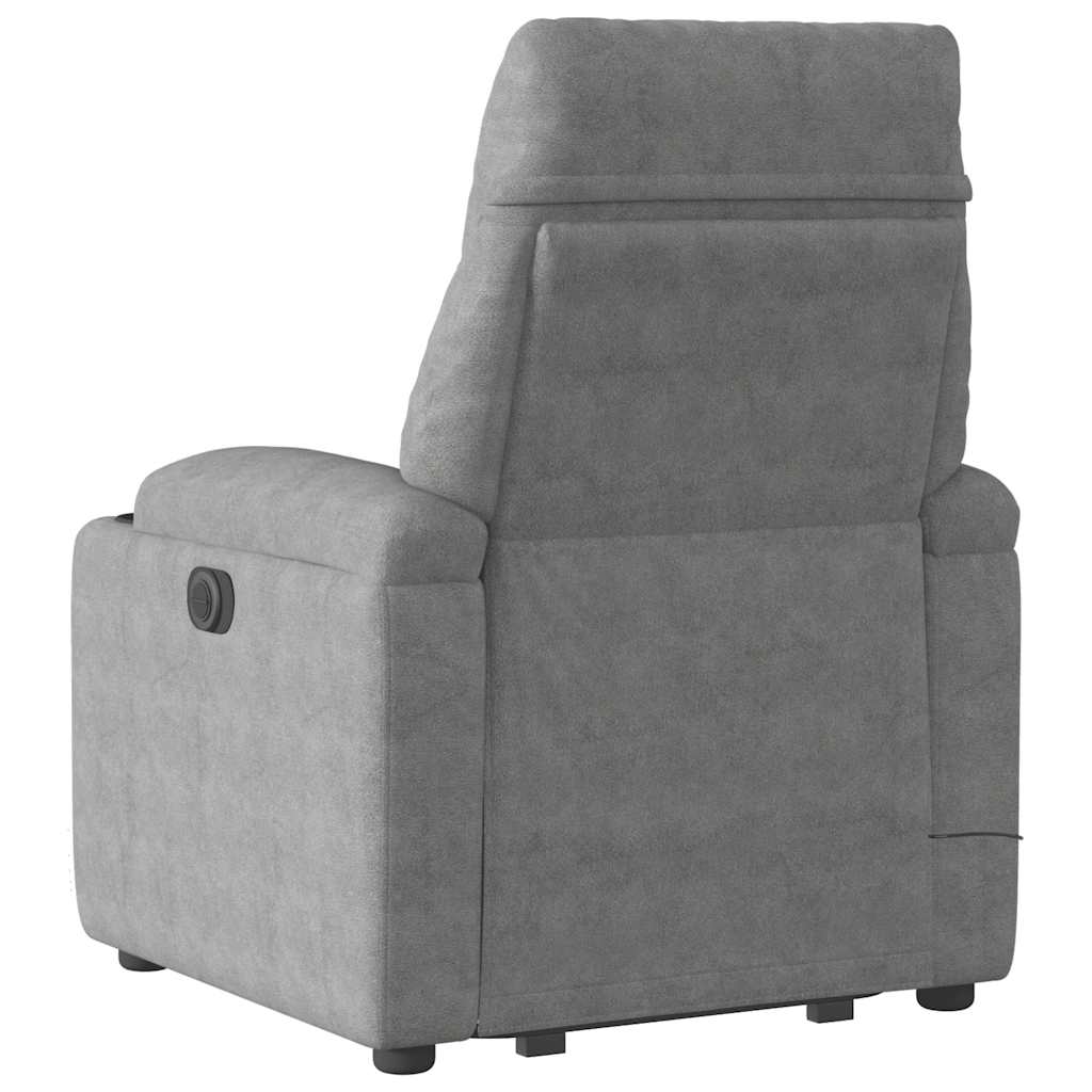 Lehne dich zurück und entspanne dich in diesem äußerst bequemen Massagesessel mit Aufstehhilfe! Elektrische Aufstehhilfe: Dieser Relaxsessel ist mit einem Elektromotor zum Anheben ausgestattet. Dank der Aufstehhilfe, die den gesamten Sessel nach oben bringt, kannst du ganz einfach auf Knopfdruck aufstehen, ohne deinen Rücken und deine Knie zu belasten.Manuelle Liegefunktion: Dieser Ruhesessel lässt sich mittels des Griffs an der rechten Seite verstellen. So kannst du das Fußteil und die Rückenlehne manuell in jede beliebige Position bringen, um höchsten Komfort zu genießen. Die Rückenlehne lässt sich max. 135 Grad nach hinten verstellen. Durch einfaches Ziehen lässt sie sich schnell wieder in die ursprüngliche Position bringen.Vibrationsfunktion: Dank der 6 Massagepunkte genießt du eine gezielte Massage. Zudem lassen sich verschiedene Massageprogramme über die mitgelieferte Handsteuerung auswählen. Die Massagefunktion wird über den USB-Anschluss betrieben, der eine zertifizierte 5-V-USB-Stromquelle erfordert (nicht im Lieferumfang enthalten).Bequemes Sitzerlebnis: Die dick gepolsterte Sitzfläche, die Rückenlehne und die breiten Armlehnen sind mit Stoff bezogen, was für ein behagliches, warmes und komfortables Sitzgefühl sorgt. Mikrofaser ist ein synthetisches Gewebe aus ultra feinen Fasern, die besonders unempfindlich gegen Flecken sind. Mikrofasergewebe ist aufgrund seiner Langlebigkeit und einfachen Reinigung eine gute Wahl für Möbelpolster.Praktische Getränkehalter und Seitentasche: Dieser Sessel verfügt über zwei praktische Getränkehalter und eine Seitentasche, in der du deine Fernbedienung oder andere wichtige Sachen griffbereit aufbewahren kannst.Solider und stabiler Rahmen: Der Rahmen aus Holz und Metall sorgt für eine solide Struktur und hohe Stabilität. Dieser TV-Sessel ist bequem und langlebig.