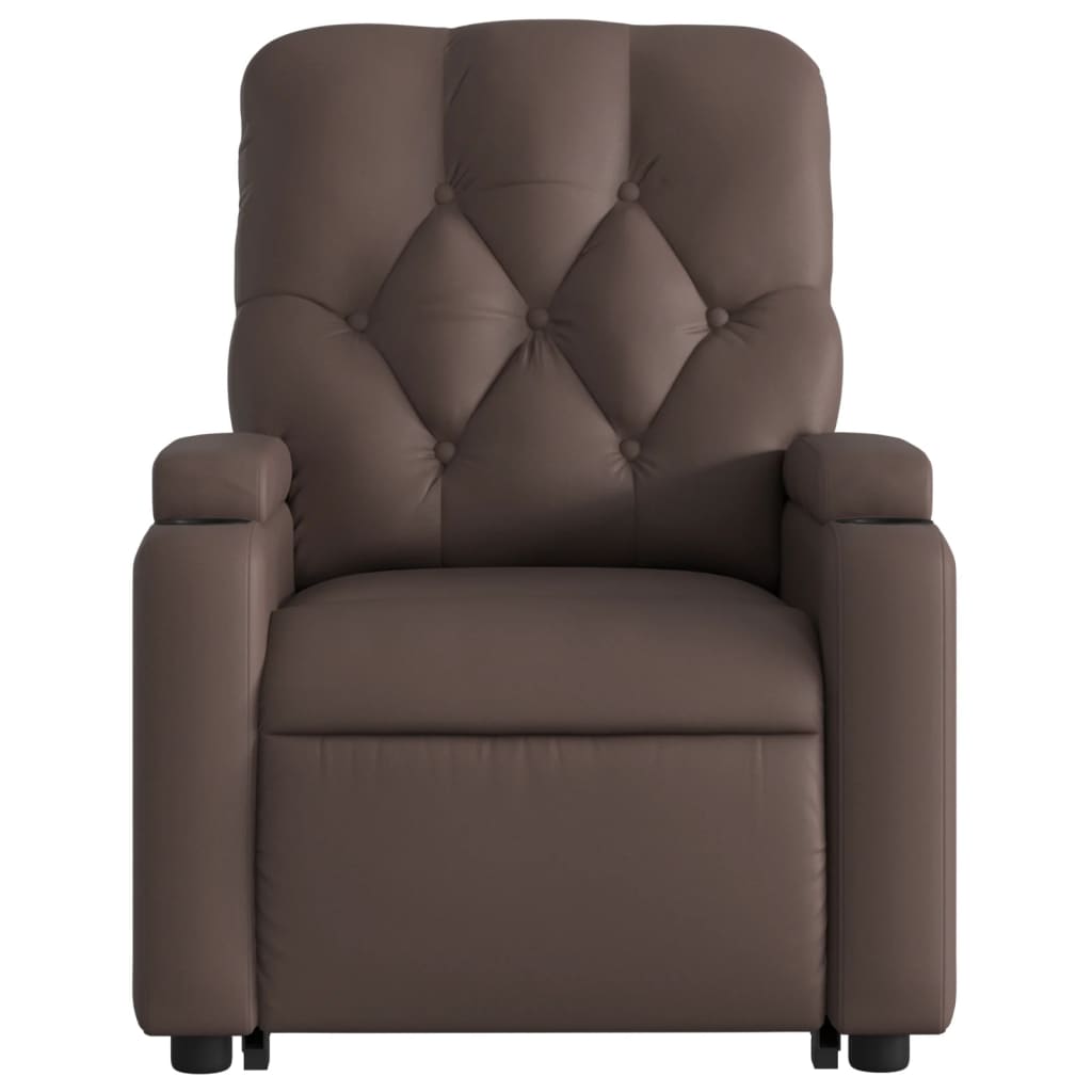 Lehne dich zurück und entspanne dich in diesem äußerst bequemen elektrischen Massagesessel mit Aufstehhilfe! Elektrische Aufstehhilfe: Dieser Relaxsessel ist mit einem Elektromotor zum Anheben ausgestattet. Dank der Aufstehhilfe, die den gesamten Sessel nach oben bringt, kannst du ganz einfach auf Knopfdruck aufstehen, ohne deinen Rücken und deine Knie zu belasten.Elektrische Liegefunktion: Dieser Relaxsessel ist mit einem Elektromotor ausgestattet, der Fußstütze und Rückenlehne durch einfaches Drücken des seitlichen Knopfes automatisch in jede gewünschte Position bringt. Diese Funktion ermöglicht eine maximale Neigung von 135 Grad. Darüber hinaus lässt sich die Rückenlehne auf Knopfdruck automatisch in die ursprünglichen Position zurückbringen.Vibrationsfunktion: Dank der 6 Massagepunkte genießt du eine gezielte Massage. Zudem lassen sich verschiedene Massageprogramme über die mitgelieferte Handsteuerung auswählen. Die Massagefunktion wird über den USB-Anschluss betrieben, der eine zertifizierte 5-V-USB-Stromquelle erfordert (nicht im Lieferumfang enthalten).Bequemes Sitzerlebnis: Die dick gepolsterte Sitzfläche, die Rückenlehne und die breiten, mit Kunstleder bezogenen Armlehnen sorgen für ein behagliches und angenehmes Sitzgefühl. Kunstleder ist ein äußerst langlebiges Material. Es ist schmutzabweisend und lässt sich mit einem feuchten Tuch einfach reinigen. Durch die glatte Oberfläche weist es die luxuriöse Schönheit von Echtleder auf.Praktische Seitentasche: Dieser Sessel verfügt über eine Seitentasche, in der du deine Fernbedienung oder andere wichtige Sachen griffbereit aufbewahren kannst.Solider und stabiler Rahmen: Der Rahmen aus Holz und Metall sorgt für eine solide Struktur und hohe Stabilität. Dieser TV-Sessel ist bequem und langlebig.