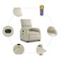 Lehne dich zurück und entspanne dich in diesem äußerst bequemen elektrischen Massagesessel mit Aufstehhilfe! Elektrische Aufstehhilfe: Dieser Relaxsessel ist mit einem Elektromotor zum Anheben ausgestattet. Dank der Aufstehhilfe, die den gesamten Sessel nach oben bringt, kannst du ganz einfach auf Knopfdruck aufstehen, ohne deinen Rücken und deine Knie zu belasten.Elektrische Liegefunktion: Dieser Relaxsessel ist mit einem Elektromotor ausgestattet, der Fußstütze und Rückenlehne durch einfaches Drücken des seitlichen Knopfes automatisch in jede gewünschte Position bringt. Diese Funktion ermöglicht eine maximale Neigung von 135 Grad. Darüber hinaus lässt sich die Rückenlehne auf Knopfdruck automatisch in die ursprünglichen Position zurückbringen.Vibrationsfunktion: Dank der 6 Massagepunkte genießt du eine gezielte Massage. Zudem lassen sich verschiedene Massageprogramme über die mitgelieferte Handsteuerung auswählen. Die Massagefunktion wird über den USB-Anschluss betrieben, der eine zertifizierte 5-V-USB-Stromquelle erfordert (nicht im Lieferumfang enthalten).Bequemes Sitzerlebnis: Die dick gepolsterte Sitzfläche, die Rückenlehne und die breiten, mit Kunstleder bezogenen Armlehnen sorgen für ein behagliches und angenehmes Sitzgefühl. Kunstleder ist ein äußerst langlebiges Material. Es ist schmutzabweisend und lässt sich mit einem feuchten Tuch einfach reinigen. Durch die glatte Oberfläche weist es die luxuriöse Schönheit von Echtleder auf.Praktische Seitentasche: Dieser Sessel verfügt über eine Seitentasche, in der du deine Fernbedienung oder andere wichtige Sachen griffbereit aufbewahren kannst.Solider und stabiler Rahmen: Der Rahmen aus Holz und Metall sorgt für eine solide Struktur und hohe Stabilität. Dieser TV-Sessel ist bequem und langlebig.