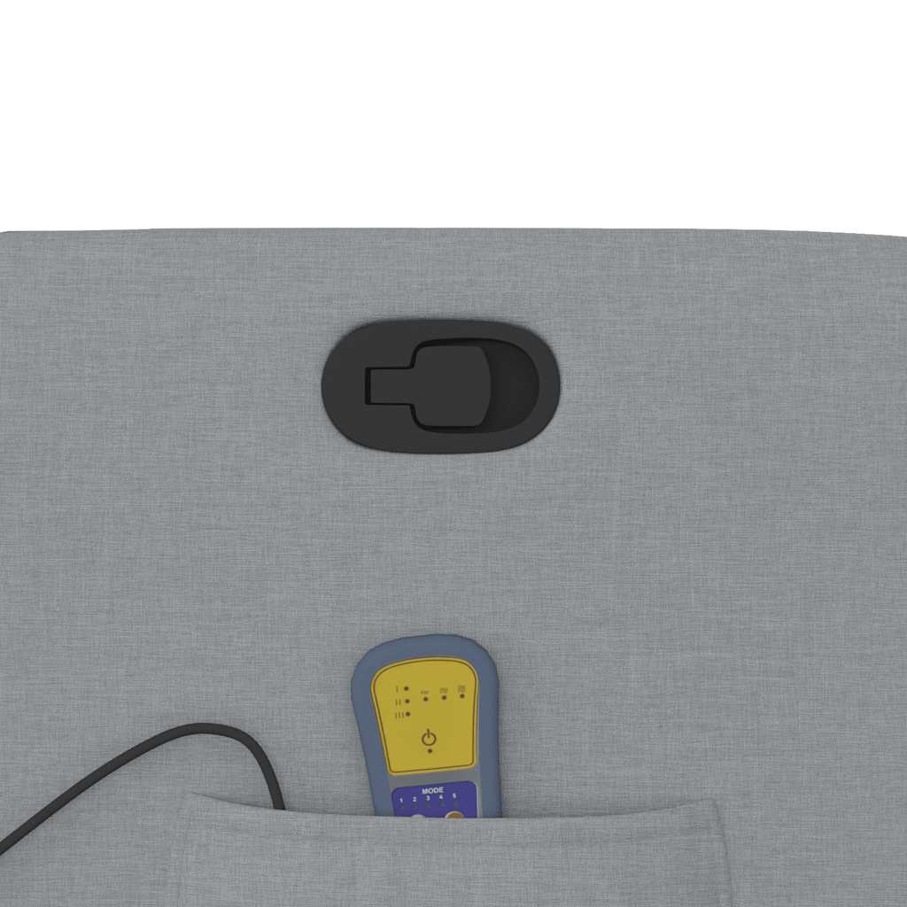 Lehne dich zurück und entspanne dich in diesem äußerst bequemen Massagesessel mit Aufstehhilfe! Elektrische Aufstehhilfe: Dieser Relaxsessel ist mit einem Elektromotor zum Anheben ausgestattet. Dank der Aufstehhilfe, die den gesamten Sessel nach oben bringt, kannst du ganz einfach auf Knopfdruck aufstehen, ohne deinen Rücken und deine Knie zu belasten.Manuelle Liegefunktion: Dieser Ruhesessel lässt sich mittels des Griffs an der rechten Seite verstellen. So kannst du das Fußteil und die Rückenlehne manuell in jede beliebige Position bringen, um höchsten Komfort zu genießen. Die Rückenlehne lässt sich max. 135 Grad nach hinten verstellen. Durch einfaches Ziehen lässt sie sich schnell wieder in die ursprüngliche Position bringen.Vibrationsfunktion: Dank der 6 Massagepunkte genießt du eine gezielte Massage. Zudem lassen sich verschiedene Massageprogramme über die mitgelieferte Handsteuerung auswählen. Die Massagefunktion wird über den USB-Anschluss betrieben, der eine zertifizierte 5-V-USB-Stromquelle erfordert (nicht im Lieferumfang enthalten).Bequemes Sitzerlebnis: Die dick gepolsterte Sitzfläche, die Rückenlehne und die breiten Armlehnen sorgen für ein behagliches und wohliges Sitzgefühl. Der Bezug aus Stoff weist eine schlichte und saubere Optik auf und ist auch atmungsaktiv und langlebig.Praktische Seitentasche: Dieser Sessel verfügt über eine Seitentasche, in der du deine Fernbedienung oder andere wichtige Sachen griffbereit aufbewahren kannst.Solider und stabiler Rahmen: Der Rahmen aus Holz und Metall sorgt für eine solide Struktur und hohe Stabilität. Dieser TV-Sessel ist bequem und langlebig.