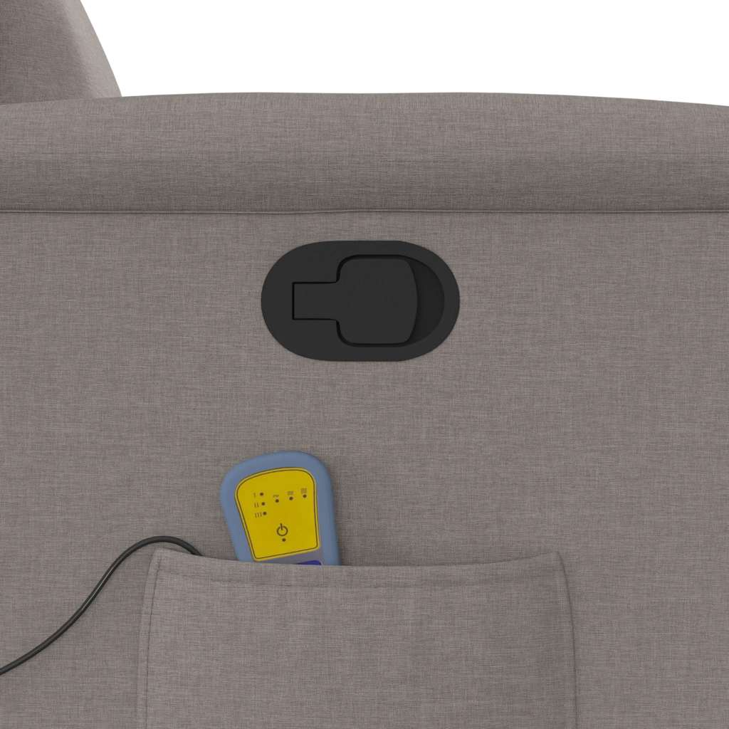 Lehne dich zurück und entspanne dich in diesem äußerst bequemen Massagesessel mit Aufstehhilfe! Elektrische Aufstehhilfe: Dieser Relaxsessel ist mit einem Elektromotor zum Anheben ausgestattet. Dank der Aufstehhilfe, die den gesamten Sessel nach oben bringt, kannst du ganz einfach auf Knopfdruck aufstehen, ohne deinen Rücken und deine Knie zu belasten.Manuelle Liegefunktion: Dieser Ruhesessel lässt sich mittels des Griffs an der rechten Seite verstellen. So kannst du das Fußteil und die Rückenlehne manuell in jede beliebige Position bringen, um höchsten Komfort zu genießen. Die Rückenlehne lässt sich max. 135 Grad nach hinten verstellen. Durch einfaches Ziehen lässt sie sich schnell wieder in die ursprüngliche Position bringen.Vibrationsfunktion: Dank der 6 Massagepunkte genießt du eine gezielte Massage. Zudem lassen sich verschiedene Massageprogramme über die mitgelieferte Handsteuerung auswählen. Die Massagefunktion wird über den USB-Anschluss betrieben, der eine zertifizierte 5-V-USB-Stromquelle erfordert (nicht im Lieferumfang enthalten).Bequemes Sitzerlebnis: Die dick gepolsterte Sitzfläche, die Rückenlehne und die breiten Armlehnen sorgen für ein behagliches und wohliges Sitzgefühl. Der Bezug aus Stoff weist eine schlichte und saubere Optik auf und ist auch atmungsaktiv und langlebig.Praktische Seitentasche: Dieser Sessel verfügt über eine Seitentasche, in der du deine Fernbedienung oder andere wichtige Sachen griffbereit aufbewahren kannst.Solider und stabiler Rahmen: Der Rahmen aus Holz und Metall sorgt für eine solide Struktur und hohe Stabilität. Dieser TV-Sessel ist bequem und langlebig.