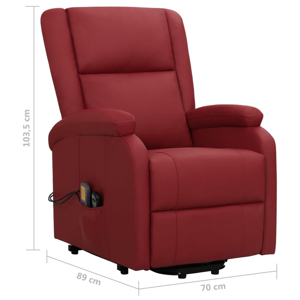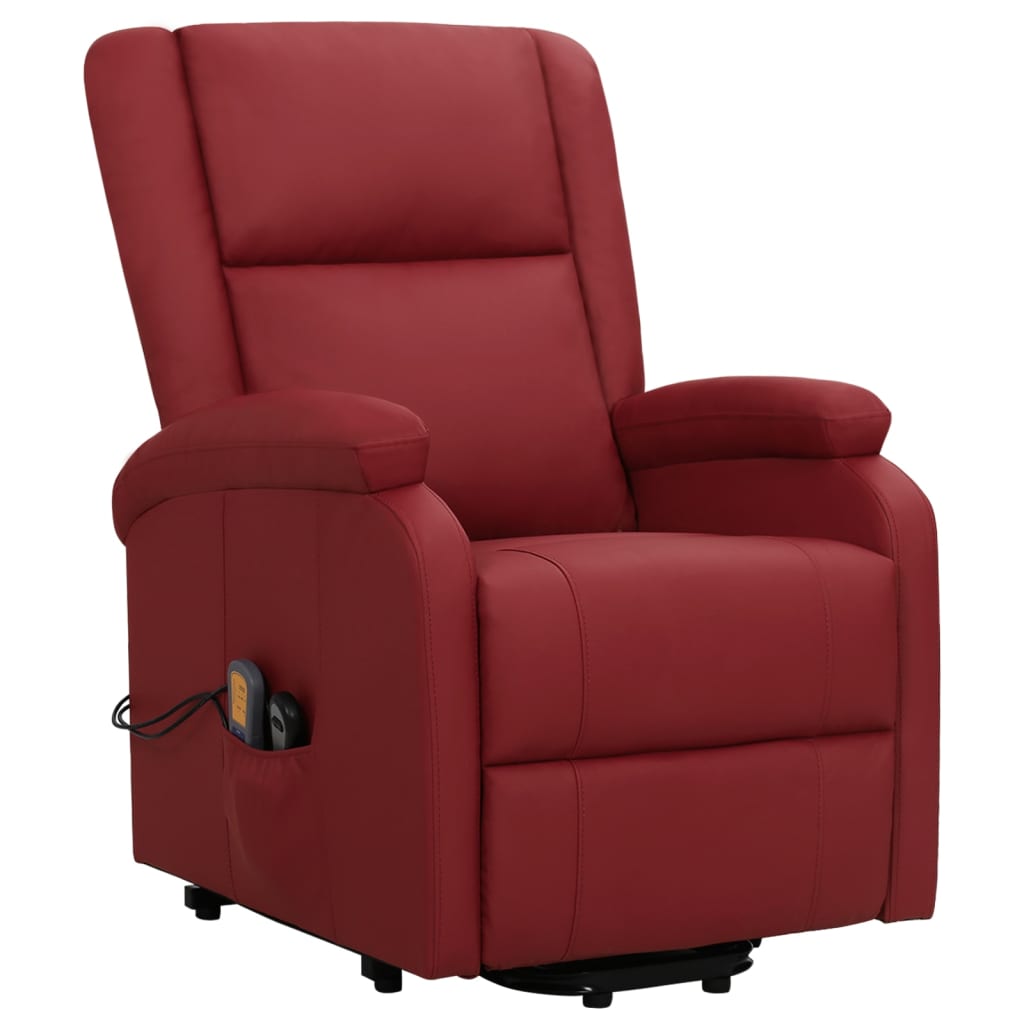 Lehne dich zurück und entspanne dich in diesem äußerst bequemen Massagesessel mit Aufstehhilfe! Manuelle Liegefunktion: Der Sessel kann manuell in 3 Positionen verstellt werden, so dass die Rückenlehne und der Fußteil je nach Bedarf eingestellt werden können.Elektrische Aufstehhilfe: Dieser Relaxsessel ist mit einem Elektromotor zum Anheben ausgestattet. Dank der Aufstehhilfe, die den gesamten Sessel nach oben bringt, kannst du mit der 2-Knopf-Handsteuerung ganz einfach aufstehen, ohne deinen Rücken und deine Knie zu belasten.Vibrationsfunktion: Mit den 6 Massagepunkten kann man eine gezielte Massage genießen. Außerdem ermöglicht die mitgelieferte Handsteuerung die Auswahl verschiedener Massageprogramme. Die Massagefunktion wird über den USB-Anschluss mit Strom betrieben, aber das zugelassene 5V-USB-Netzteil ist nicht im Lieferumfang enthalten.Bequemes Sitzerlebnis: Der dick gepolsterte Sitz, die Rückenlehne und die breiten, mit Kunstleder bezogenen Armlehnen sorgen für ein behagliches und angenehmes Sitzgefühl. Künstliches Leder ist ein äußerst langlebiges Material. Es ist schmutzabweisend und lässt sich mit einem feuchten Tuch einfach reinigen. Durch die glatte Oberfläche weist es die luxuriöse Schönheit von Echtleder auf.Solider und stabiler Rahmen: Der Rahmen aus Holz und Metall sorgt für eine solide Struktur und hohe Stabilität. Dieser TV-Sessel ist bequem und langlebig.