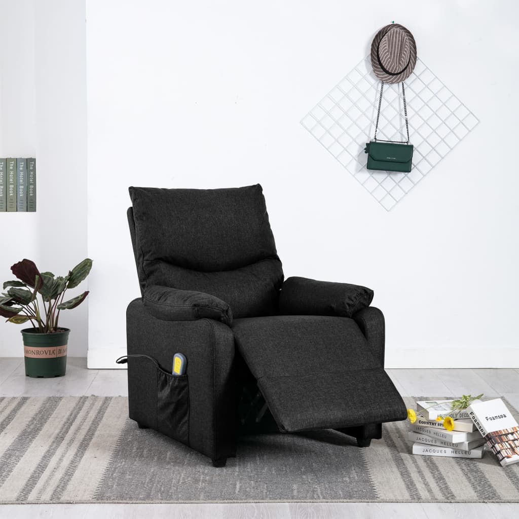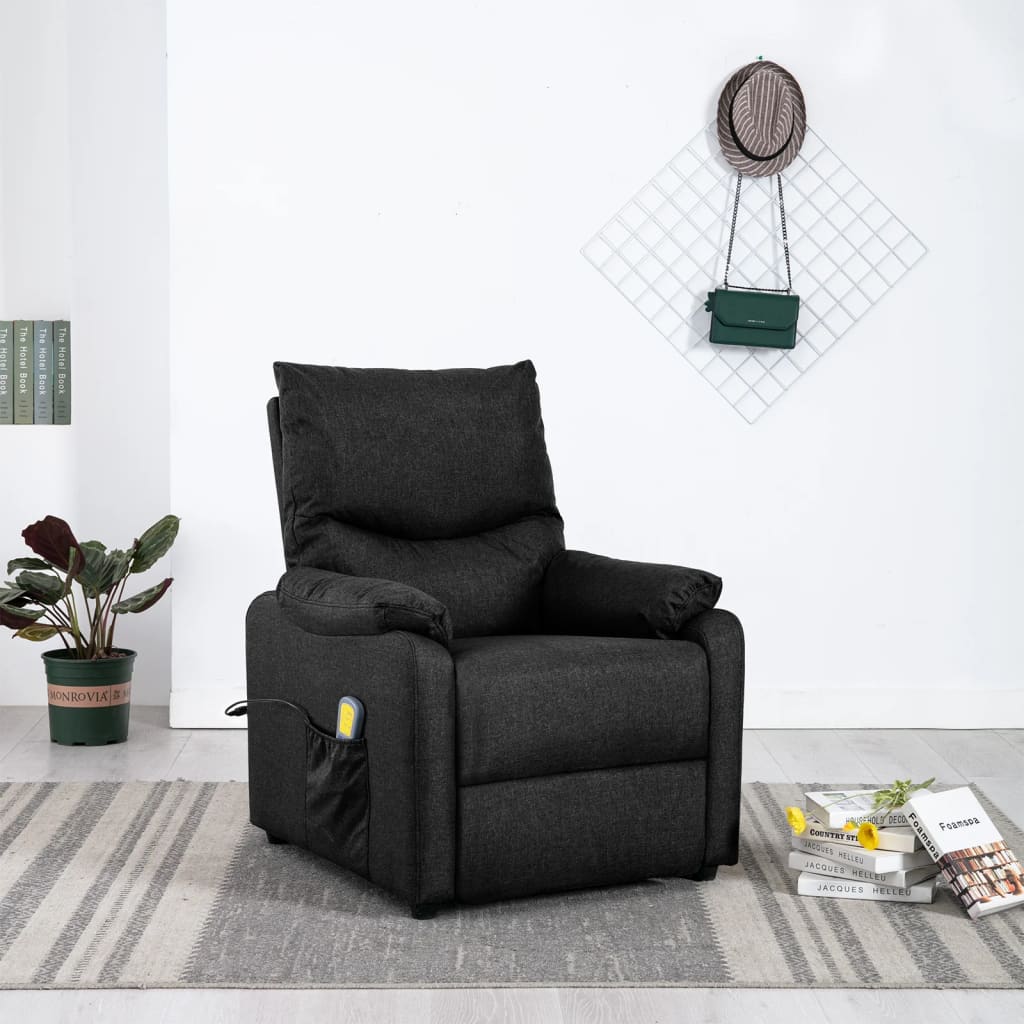Lehne dich zurück und entspanne dich in diesem äußerst bequemen Massagesessel! Manuelle Liegefunktion: Der Sessel kann manuell in 3 Positionen verstellt werden, so dass die Rückenlehne und der Fußteil je nach Bedarf eingestellt werden können.Vibrationsfunktion: Mit den 6 Massagepunkten kann man eine gezielte Massage genießen. Außerdem ermöglicht die mitgelieferte Handsteuerung die Auswahl verschiedener Massageprogramme. Die Massagefunktion wird über den USB-Anschluss mit Strom betrieben, aber das zugelassene 5V-USB-Netzteil ist nicht im Lieferumfang enthalten.Bequemes Sitzerlebnis: Die dick gepolsterte Sitzfläche, die Rückenlehne und die breiten Armlehnen sorgen für ein behagliches und wohliges Sitzgefühl. Der Bezug aus Stoff hat ein schlichtes und sauberes Aussehen, ist atmungsaktiv und langlebig.Solider und stabiler Rahmen: Der Rahmen aus Holz und Metall sorgt für eine solide Struktur und hohe Stabilität. Dieser TV-Sessel ist bequem und langlebig.