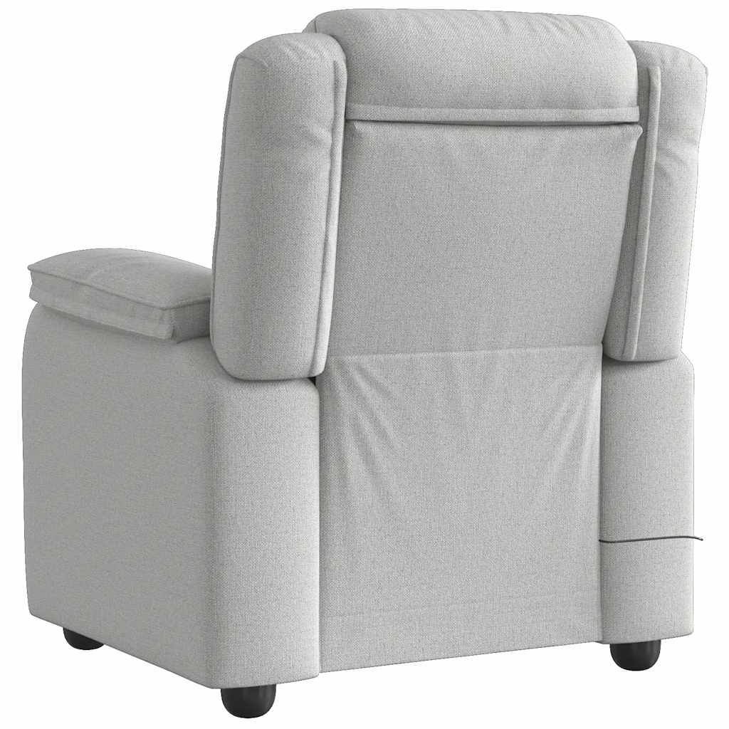 Lehne dich zurück und entspanne dich in diesem äußerst bequemen Massagesessel! Manuelle Liegefunktion: Dieser Ruhesessel lässt sich mittels des Griffs an der rechten Seite verstellen. So kannst du das Fußteil und die Rückenlehne manuell in jede beliebige Position bringen, um höchsten Komfort zu genießen. Die Rückenlehne lässt sich max. 135 Grad nach hinten verstellen. Durch einfaches Ziehen lässt sie sich schnell wieder in die ursprüngliche Position bringen.Vibrationsfunktion: Mit den 6 Massagepunkten kann man eine gezielte Massage genießen. Außerdem ermöglicht die mitgelieferte Handsteuerung die Auswahl verschiedener Massageprogramme. Die Massagefunktion wird über den USB-Anschluss mit Strom betrieben, aber das zugelassene 5V-USB-Netzteil ist nicht im Lieferumfang enthalten.Bequemes Sitzerlebnis: Die dick gepolsterte Sitzfläche, die Rückenlehne und die breiten Armlehnen sorgen für ein behagliches und wohliges Sitzgefühl. Der Bezug aus Stoff weist eine schlichte und saubere Optik auf und ist auch atmungsaktiv und langlebig.Praktische Seitentasche: Dieser Sessel verfügt über eine Seitentasche, in der du deine Fernbedienung oder andere wichtige Sachen griffbereit aufbewahren kannst.Solider und stabiler Rahmen: Der Rahmen aus Holz und Metall sorgt für eine solide Struktur und hohe Stabilität. Dieser TV-Sessel ist bequem und langlebig.