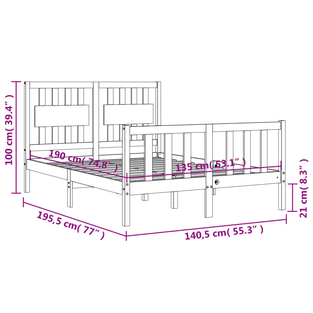 - Gesamtabmessungen des Bettes: 195,5 x 140,5 x 100 cm (L x B x H)