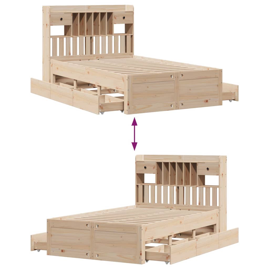 In diesem Bett mit Bücherregal schläft man besser und erholsamer! Das Massivholzbett ist eine willkommene Ergänzung für jedes Schlafzimmer. Stabiles und langlebiges Gestell: Massives Kiefernholz ist für seine Stärke und Haltbarkeit bekannt. Seine gerade Maserung und die charakteristischen Aststellen tragen zu seinem rustikalen Charme bei.Lattenrost für optimale Unterstützung: Der Bettrahmen ist mit einem Lattenrost ausgestattet, der deine Matratze stützt und atmungsaktiv hält.Viel Stauraum: Dieses Regal-Kopfteil bietet reichlich Stauraum, um Bücher, Dekoartikel und andere Gegenstände griffbereit aufzubewahren und auf diese Weise für Ordnung im Schlafzimmer zu sorgen.Platzsparend: Dieses Kopfteil bietet eine platzsparende Alternative zu üblichen Nachttischen. Es schafft zusätzlichen Stauraum im Schlafzimmer und ist eine ideale Wahl für kleine oder begrenzte Räume.Leichtgängig: Dank der vier Rollen lässt sich die Unterbettschublade mühelos hineinschieben und herausziehen. Gut zu wissen:Bei diesem Bett ist keine Matratze im Lieferumfang enthalten. Wir bieten jedoch eine große Auswahl an Matratzen an. Du kannst in unserem Shop nach einer passenden Matratze suchen.