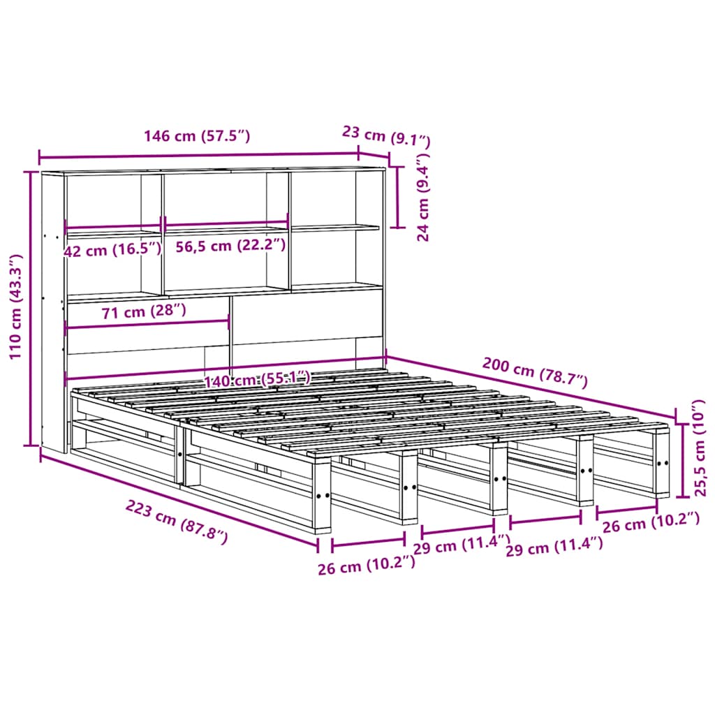 In diesem Bett mit Bücherregal schläft man besser und erholsamer! Das Massivholzbett ist eine willkommene Ergänzung für jedes Schlafzimmer. Stabiles und langlebiges Gestell: Massives Kiefernholz ist für seine Stärke und Haltbarkeit bekannt. Seine gerade Maserung und die charakteristischen Aststellen tragen zu seinem rustikalen Charme bei. Lattenrost für optimale Unterstützung: Der Bettrahmen ist mit einem Lattenrost ausgestattet, der deine Matratze stützt und atmungsaktiv hält. Viel Stauraum: Dieses Regal-Kopfteil bietet reichlich Stauraum, um Bücher, Dekoartikel und andere Gegenstände griffbereit aufzubewahren und auf diese Weise für Ordnung im Schlafzimmer zu sorgen. Praktisches Fußteil: Das Fußteil trägt nicht nur zur Gesamtstabilität des Bettrahmens bei und sorgt auch für eine sichere Schlafumgebung. Es hält die Matratze und das Bettzeug am Platz, wodurch ein ordentliches Erscheinungsbild erhalten bleibt. Platzsparend: Dieses Kopfteil bietet eine platzsparende Alternative zu üblichen Nachttischen. Es schafft zusätzlichen Stauraum im Schlafzimmer und ist eine ideale Wahl für kleine oder begrenzte Räume. Gut zu wissen:Bei diesem Bett ist keine Matratze im Lieferumfang enthalten. Wir bieten jedoch eine große Auswahl an Matratzen an. Du kannst in unserem Shop nach einer passenden Matratze suchen.