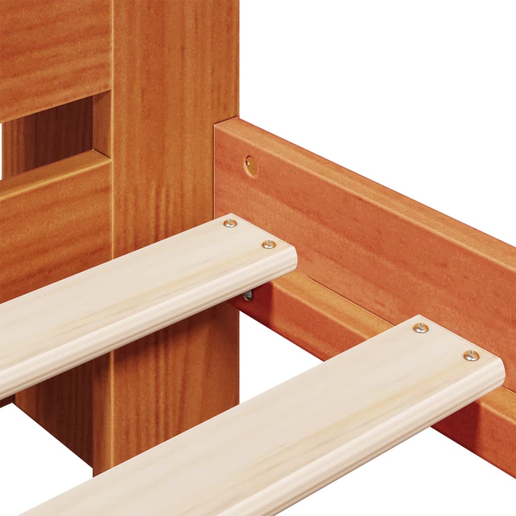 In diesem Bett mit Bücherregal schläft man besser und erholsamer! Das Massivholzbett ist eine willkommene Ergänzung für jedes Schlafzimmer. Stabiles und langlebiges Gestell: Massives Kiefernholz ist für seine Stärke und Haltbarkeit bekannt. Seine gerade Maserung und die charakteristischen Aststellen tragen zu seinem rustikalen Charme bei.Lattenrost für optimale Unterstützung: Der Bettrahmen ist mit einem Lattenrost ausgestattet, der deine Matratze stützt und atmungsaktiv hält.Viel Stauraum: Dieses Regal-Kopfteil bietet reichlich Stauraum, um Bücher, Dekoartikel und andere Gegenstände griffbereit aufzubewahren und auf diese Weise für Ordnung im Schlafzimmer zu sorgen.Praktisches Fußteil: Das Fußteil trägt nicht nur zur Gesamtstabilität des Bettrahmens bei und sorgt auch für eine sichere Schlafumgebung. Es hält die Matratze und das Bettzeug am Platz, wodurch ein ordentliches Erscheinungsbild erhalten bleibt.Platzsparend: Dieses Kopfteil bietet eine platzsparende Alternative zu üblichen Nachttischen. Es schafft zusätzlichen Stauraum im Schlafzimmer und ist eine ideale Wahl für kleine oder begrenzte Räume. Gut zu wissen:Bei diesem Bett ist keine Matratze im Lieferumfang enthalten. Wir bieten jedoch eine große Auswahl an Matratzen an. Du kannst in unserem Shop nach einer passenden Matratze suchen.