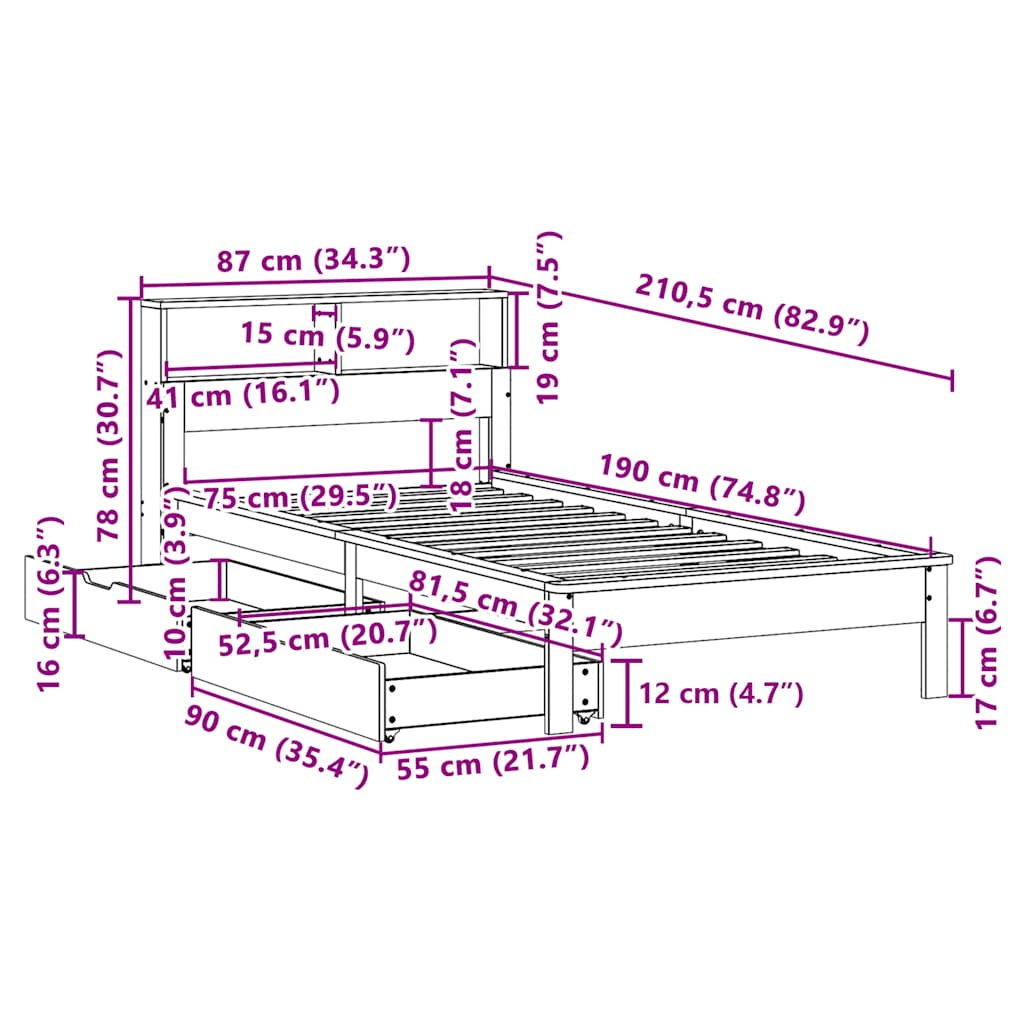 In diesem Bett mit Bücherregal schläft man besser und erholsamer! Das Massivholzbett ist eine willkommene Ergänzung für jedes Schlafzimmer. Stabiles und langlebiges Gestell: Massives Kiefernholz ist für seine Stärke und Haltbarkeit bekannt. Seine gerade Maserung und die charakteristischen Aststellen tragen zu seinem rustikalen Charme bei.Lattenrost für optimale Unterstützung: Das Bett ist mit einem Lattenrost ausgestattet, der deine Matratze optimal stützt und eine gute Luftzirkulation ermöglicht.Leichtgängig: Dank der vier Rollen lässt sich die Unterbettschublade mühelos hineinschieben und herausziehen.Stabile und starke Bettfüße: Dieses Bettgestell wird von starken Füßen getragen, die für Stabilität sorgen.Platzsparend: Dieses Kopfteil bietet eine platzsparende Alternative zu üblichen Nachttischen. Es schafft zusätzlichen Stauraum im Schlafzimmer und ist eine ideale Wahl für kleine oder begrenzte Räume. Gut zu wissen:Bei diesem Bett ist keine Matratze im Lieferumfang enthalten. Wir bieten jedoch eine große Auswahl an Matratzen an. Du kannst in unserem Shop nach einer passenden Matratze suchen.