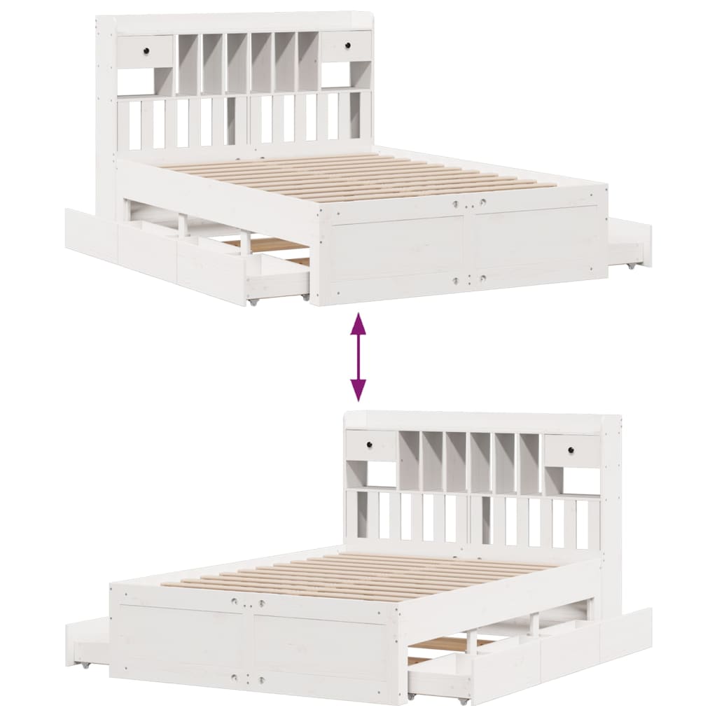In diesem Bett mit Bücherregal schläft man besser und erholsamer! Das Massivholzbett ist eine willkommene Ergänzung für jedes Schlafzimmer. Stabiles und langlebiges Gestell: Massives Kiefernholz ist für seine Stärke und Haltbarkeit bekannt. Seine gerade Maserung und die charakteristischen Aststellen tragen zu seinem rustikalen Charme bei.Lattenrost für optimale Unterstützung: Der Bettrahmen ist mit einem Lattenrost ausgestattet, der deine Matratze stützt und atmungsaktiv hält.Viel Stauraum: Dieses Regal-Kopfteil bietet reichlich Stauraum, um Bücher, Dekoartikel und andere Gegenstände griffbereit aufzubewahren und auf diese Weise für Ordnung im Schlafzimmer zu sorgen.Platzsparend: Dieses Kopfteil bietet eine platzsparende Alternative zu üblichen Nachttischen. Es schafft zusätzlichen Stauraum im Schlafzimmer und ist eine ideale Wahl für kleine oder begrenzte Räume.Leichtgängig: Dank der vier Rollen lässt sich die Unterbettschublade mühelos hineinschieben und herausziehen. Gut zu wissen:Bei diesem Bett ist keine Matratze im Lieferumfang enthalten. Wir bieten jedoch eine große Auswahl an Matratzen an. Du kannst in unserem Shop nach einer passenden Matratze suchen.