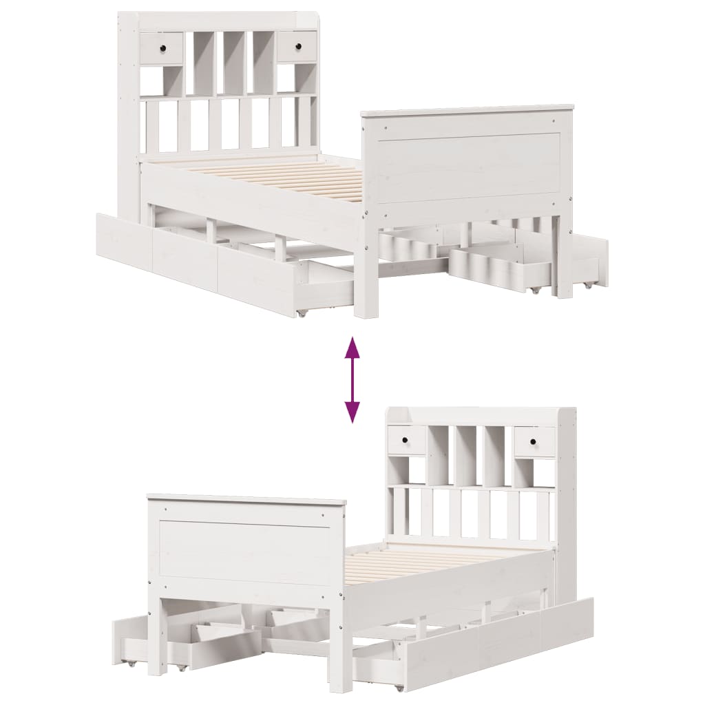 In diesem Bett mit Bücherregal schläft man besser und erholsamer! Das Massivholzbett ist eine willkommene Ergänzung für jedes Schlafzimmer. Stabiles und langlebiges Gestell: Massives Kiefernholz ist für seine Stärke und Haltbarkeit bekannt. Seine gerade Maserung und die charakteristischen Aststellen tragen zu seinem rustikalen Charme bei.Lattenrost für optimale Unterstützung: Der Bettrahmen ist mit einem Lattenrost ausgestattet, der deine Matratze stützt und atmungsaktiv hält.Viel Stauraum: Dieses Regal-Kopfteil bietet reichlich Stauraum, um Bücher, Dekoartikel und andere Gegenstände griffbereit aufzubewahren und auf diese Weise für Ordnung im Schlafzimmer zu sorgen.Praktisches Fußteil: Das Fußteil trägt nicht nur zur Gesamtstabilität des Bettrahmens bei und sorgt auch für eine sichere Schlafumgebung. Es hält die Matratze und das Bettzeug am Platz, wodurch ein ordentliches Erscheinungsbild erhalten bleibt.Platzsparend: Dieses Kopfteil bietet eine platzsparende Alternative zu üblichen Nachttischen. Es schafft zusätzlichen Stauraum im Schlafzimmer und ist eine ideale Wahl für kleine oder begrenzte Räume. Gut zu wissen:Bei diesem Bett ist keine Matratze im Lieferumfang enthalten. Wir bieten jedoch eine große Auswahl an Matratzen an. Du kannst in unserem Shop nach einer passenden Matratze suchen.