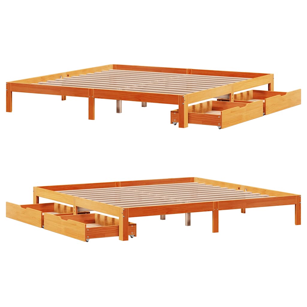 Mit diesem Bett wirst du einen besseren, erholsameren Schlaf genießen! Er ist eine einladende Ergänzung für jedes Schlafzimmer. Stabiles und langlebiges Gestell: Massives Kiefernholz ist für seine Stärke und Haltbarkeit bekannt. Seine gerade Maserung und die charakteristischen Aststellen tragen zu seinem rustikalen Charme bei.Lattenrost für optimale Unterstützung: Der Bettrahmen ist mit einem Lattenrost ausgestattet, der deine Matratze stützt und atmungsaktiv hält.Zusätzlicher Stauraum: Dieses Bettgestell verfügt über zwei Schubladen, die Stauraum für Sachen wie zusätzliches Bettzeug, saisonale Kleidung und Spielzeug schaffen.Leichtgängig: Dank der vier Rollen lässt sich die Unterbettschublade mühelos hineinschieben und herausziehen. Gut zu wissen:Bei diesem Bett ist keine Matratze im Lieferumfang enthalten. Wir bieten jedoch eine große Auswahl an Matratzen an. Du kannst in unserem Shop nach einer passenden Matratze suchen.