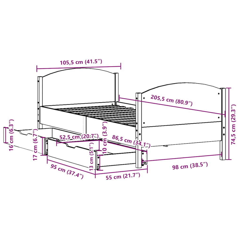Mit diesem Bett wirst du einen besseren, erholsameren Schlaf genießen! Er ist eine einladende Ergänzung für jedes Schlafzimmer. Stabiles und langlebiges Gestell: Massives Kiefernholz ist für seine Stärke und Haltbarkeit bekannt. Seine gerade Maserung und die charakteristischen Aststellen tragen zu seinem rustikalen Charme bei.Lattenrost für optimale Unterstützung: Der Bettrahmen ist mit einem Lattenrost ausgestattet, der deine Matratze stützt und atmungsaktiv hält.Vielseitiges Kopfteil: Dieses Bettgestell ist mit einem Kopfteil versehen, das als komfortable Rückenstütze beim Lesen oder Fernsehen und gleichzeitig als dekoratives Element dient.Optimale Ausnutzung des Raumes: Dieser Bettrahmen verfügt über zwei Schubladen, in denen du Sachen wie zusätzliches Bettzeug, saisonale Kleidung und Spielzeug aufbewahren kannst.Leichtgängig: Dank der vier Rollen lässt sich die Unterbettschublade mühelos hineinschieben und herausziehen. Gut zu wissen:Bei diesem Bett ist keine Matratze im Lieferumfang enthalten. Wir bieten jedoch eine große Auswahl an Matratzen an. Du kannst in unserem Shop nach einer passenden Matratze suchen.