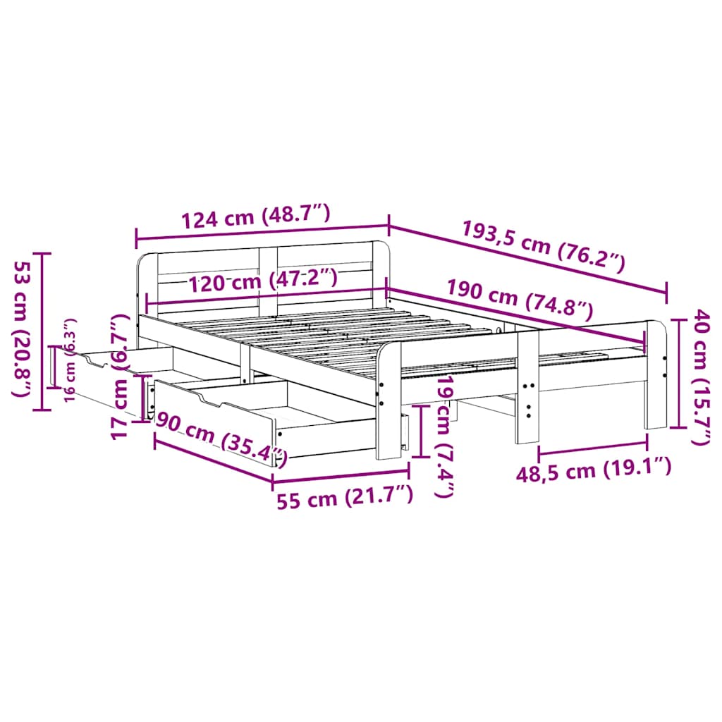Mit diesem Bett wirst du einen besseren, erholsameren Schlaf genießen! Er ist eine einladende Ergänzung für jedes Schlafzimmer. Stabiles und langlebiges Gestell: Massives Kiefernholz ist für seine Stärke und Haltbarkeit bekannt. Seine gerade Maserung und die charakteristischen Aststellen tragen zu seinem rustikalen Charme bei.Lattenrost für optimale Unterstützung: Der Bettrahmen ist mit einem Lattenrost ausgestattet, der deine Matratze stützt und atmungsaktiv hält.Optimale Ausnutzung des Raumes: Dieses Bettgestell verfügt über zwei Schubladen, in denen du Sachen wie zusätzliches Bettzeug, saisonale Kleidung uvm. aufbewahren kannst.Vielseitiges Kopfteil: Dieses Bettgestell ist mit einem Kopfteil versehen, das als komfortable Rückenstütze beim Lesen oder Fernsehen und gleichzeitig als dekoratives Element dient.Leichtgängig: Dank der vier Rollen lässt sich die Unterbettschublade mühelos hineinschieben und herausziehen. Gut zu wissen:Bei diesem Bett ist keine Matratze im Lieferumfang enthalten. Wir bieten jedoch eine große Auswahl an Matratzen an. Du kannst in unserem Shop nach einer passenden Matratze suchen.