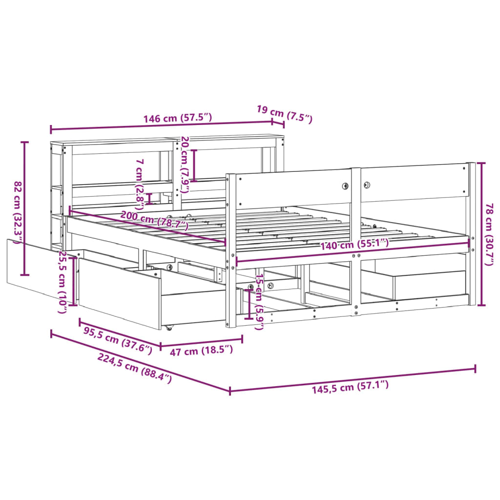 Mit diesem Bett wirst du einen besseren, erholsameren Schlaf genießen! Er ist eine einladende Ergänzung für jedes Schlafzimmer. Stabiles und langlebiges Gestell: Massives Kiefernholz ist für seine Stärke und Haltbarkeit bekannt. Seine gerade Maserung und die charakteristischen Aststellen tragen zu seinem rustikalen Charme bei.Lattenrost für optimale Unterstützung: Der Bettrahmen ist mit einem Lattenrost ausgestattet, der deine Matratze stützt und atmungsaktiv hält.Optimale Ausnutzung des Raumes: Dieser Bettrahmen verfügt über vier Schubladen, in denen du Sachen wie zusätzliches Bettzeug, saisonale Kleidung und Spielzeug aufbewahren kannst.Reichlich Stauraum: Das elegante Kopfteil des Bettes verfügt über zwei praktische Ablagen, die reichlich Stauraum bieten, um wichtige Sachen nachts griffbereit zu halten.Freistehend: Das freistehende Kopfteil lässt sich mühelos anbringen und bei Bedarf umstellen, ohne eine Befestigung an der Wand zu erfordern. Gut zu wissen:Bei diesem Bett ist keine Matratze im Lieferumfang enthalten. Wir bieten jedoch eine große Auswahl an Matratzen an. Du kannst in unserem Shop nach einer passenden Matratze suchen.