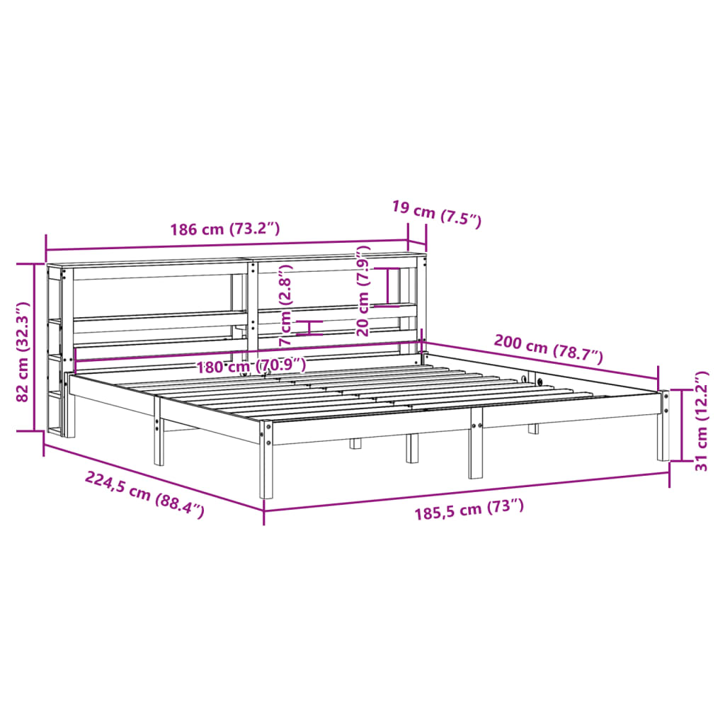 Genießen Sie einen erholsamen Schlaf in diesem Holzbett! Es wird eine praktische und dekorative Ergänzung zu Ihrem Interieur sein. Massives Kiefernholz: Massives Kiefernholz ist ein wunderschönes Naturmaterial. Kiefernholz weist eine gerade Maserung auf und die Aststellen verleihen dem Material seine charakteristische, rustikale Optik.Sperrholzlatten: Die Sperrholzlatten sorgen für eine gute Gewichtsverteilung sowie einen guten Halt der Matratze, während ihre Atmungsaktivität nicht beeinträchtigt wird.Reichlich Stauraum: Das elegante Kopfteil des Bettes verfügt über zwei praktische Ablagen, die reichlich Stauraum bieten, um wichtige Sachen nachts griffbereit zu halten.Freistehend: Das freistehende Kopfteil lässt sich mühelos anbringen und bei Bedarf umstellen, ohne eine Befestigung an der Wand zu erfordern. Gut zu wissen: Bei diesem Bett ist keine Matratze im Lieferumfang enthalten. Wir bieten jedoch eine große Auswahl an Matratzen an. Du kannst in unserem Shop nach einer passenden Matratze suchen.