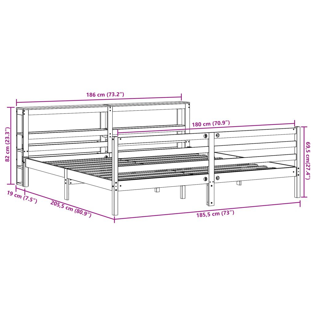 Genießen Sie einen erholsamen Schlaf in diesem Holzbett! Es wird eine praktische und dekorative Ergänzung zu Ihrem Interieur sein. Massives Kiefernholz: Massives Kiefernholz ist ein wunderschönes Naturmaterial. Kiefernholz weist eine gerade Maserung auf und die Aststellen verleihen dem Material seine charakteristische, rustikale Optik.Sperrholzlatten: Die Sperrholzlatten sorgen für eine gute Gewichtsverteilung sowie einen guten Halt der Matratze, während ihre Atmungsaktivität nicht beeinträchtigt wird.Reichlich Stauraum: Das elegante Kopfteil des Bettes verfügt über zwei praktische Ablagen, die reichlich Stauraum bieten, um wichtige Sachen nachts griffbereit zu halten.Freistehend: Das freistehende Kopfteil lässt sich mühelos anbringen und bei Bedarf umstellen, ohne eine Befestigung an der Wand zu erfordern. Gut zu wissen: Bei diesem Bett ist keine Matratze im Lieferumfang enthalten. Wir bieten jedoch eine große Auswahl an Matratzen an. Du kannst in unserem Shop nach einer passenden Matratze suchen.