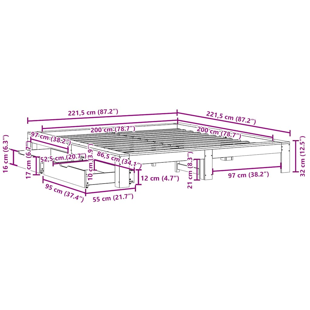 Mit diesem Bett wirst du einen besseren, erholsameren Schlaf genießen! Er ist eine einladende Ergänzung für jedes Schlafzimmer. Stabiles und langlebiges Gestell: Massives Kiefernholz ist für seine Stärke und Haltbarkeit bekannt. Seine gerade Maserung und die charakteristischen Aststellen tragen zu seinem rustikalen Charme bei.Lattenrost für optimale Unterstützung: Der Bettrahmen ist mit einem Lattenrost ausgestattet, der deine Matratze stützt und atmungsaktiv hält.Optimale Ausnutzung des Raumes: Dieses Bettgestell verfügt über zwei Schubladen, in denen du Sachen wie zusätzliches Bettzeug, saisonale Kleidung uvm. aufbewahren kannst.Stabile und starke Beine: Die robusten Beine verleihen dem Holzbett Stabilität, Sicherheit und Festigkeit.Leichtgängig: Dank der vier Rollen lässt sich die Unterbettschublade mühelos hineinschieben und herausziehen. Gut zu wissen:Bei diesem Bett ist keine Matratze im Lieferumfang enthalten. Wir bieten jedoch eine große Auswahl an Matratzen an. Du kannst in unserem Shop nach einer passenden Matratze suchen.