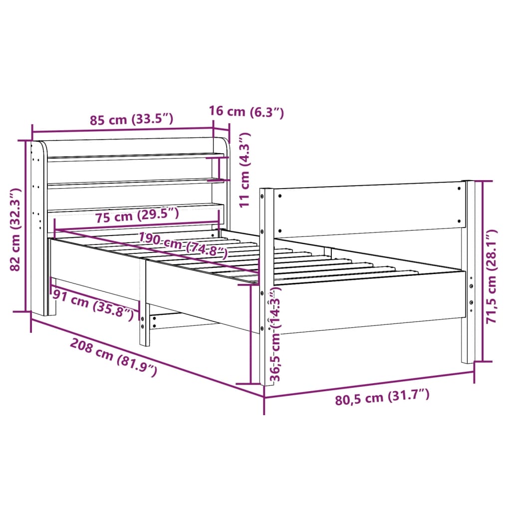 Mobile Preview: Massivholzbett ohne Matratze 75x190 cm Kiefernholz
