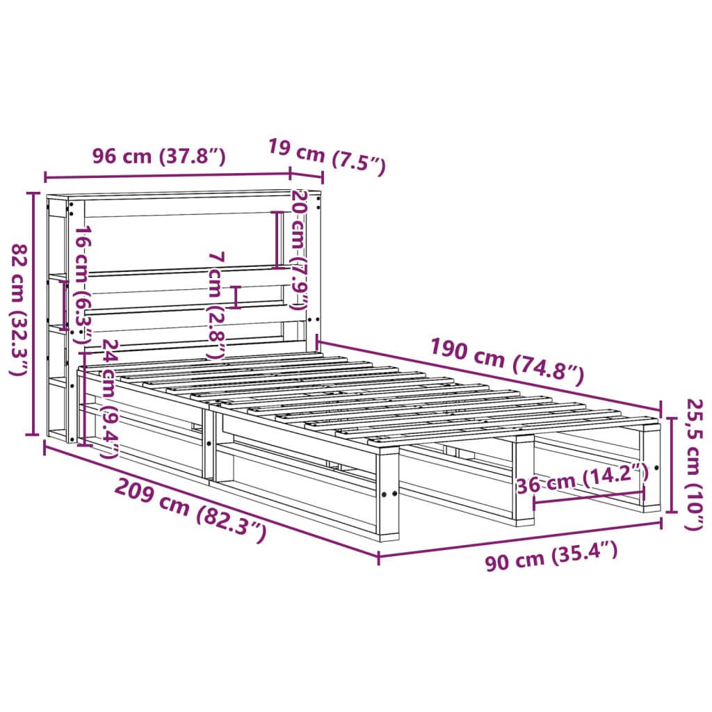 - Gesamtabmessungen des Bettes: 209 x 96 x 82 cm (L x B x H)