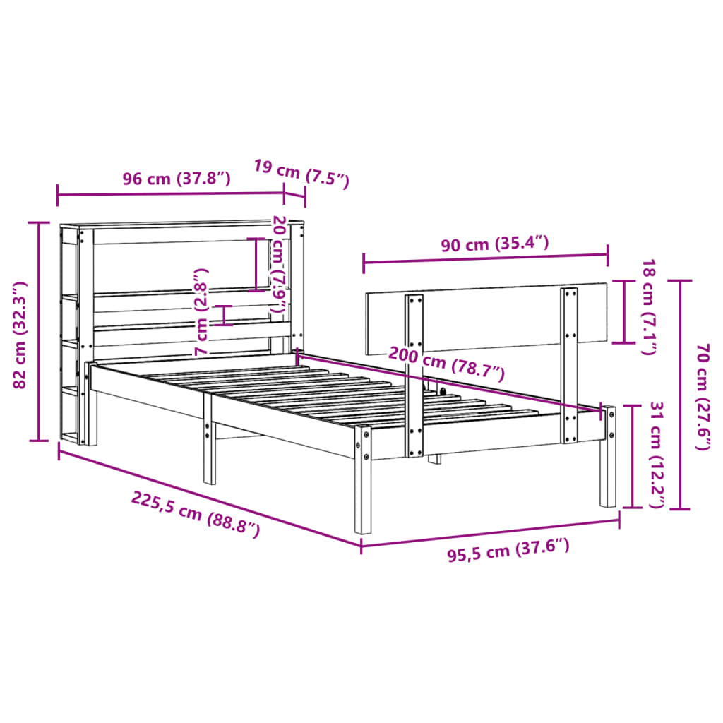 Genießen Sie einen erholsamen Schlaf in diesem Holzbett! Es wird eine praktische und dekorative Ergänzung zu Ihrem Interieur sein. Massives Kiefernholz: Massives Kiefernholz ist ein wunderschönes Naturmaterial. Kiefernholz weist eine gerade Maserung auf und die Aststellen verleihen dem Material seine charakteristische, rustikale Optik.Sperrholzlatten: Die Sperrholzlatten sorgen für eine gute Gewichtsverteilung sowie einen guten Halt der Matratze, während ihre Atmungsaktivität nicht beeinträchtigt wird.Reichlich Stauraum: Das elegante Kopfteil des Bettes verfügt über zwei praktische Ablagen, die reichlich Stauraum bieten, um wichtige Sachen nachts griffbereit zu halten.Freistehend: Das freistehende Kopfteil lässt sich mühelos anbringen und bei Bedarf umstellen, ohne eine Befestigung an der Wand zu erfordern. Gut zu wissen: Bei diesem Bett ist keine Matratze im Lieferumfang enthalten. Wir bieten jedoch eine große Auswahl an Matratzen an. Du kannst in unserem Shop nach einer passenden Matratze suchen.