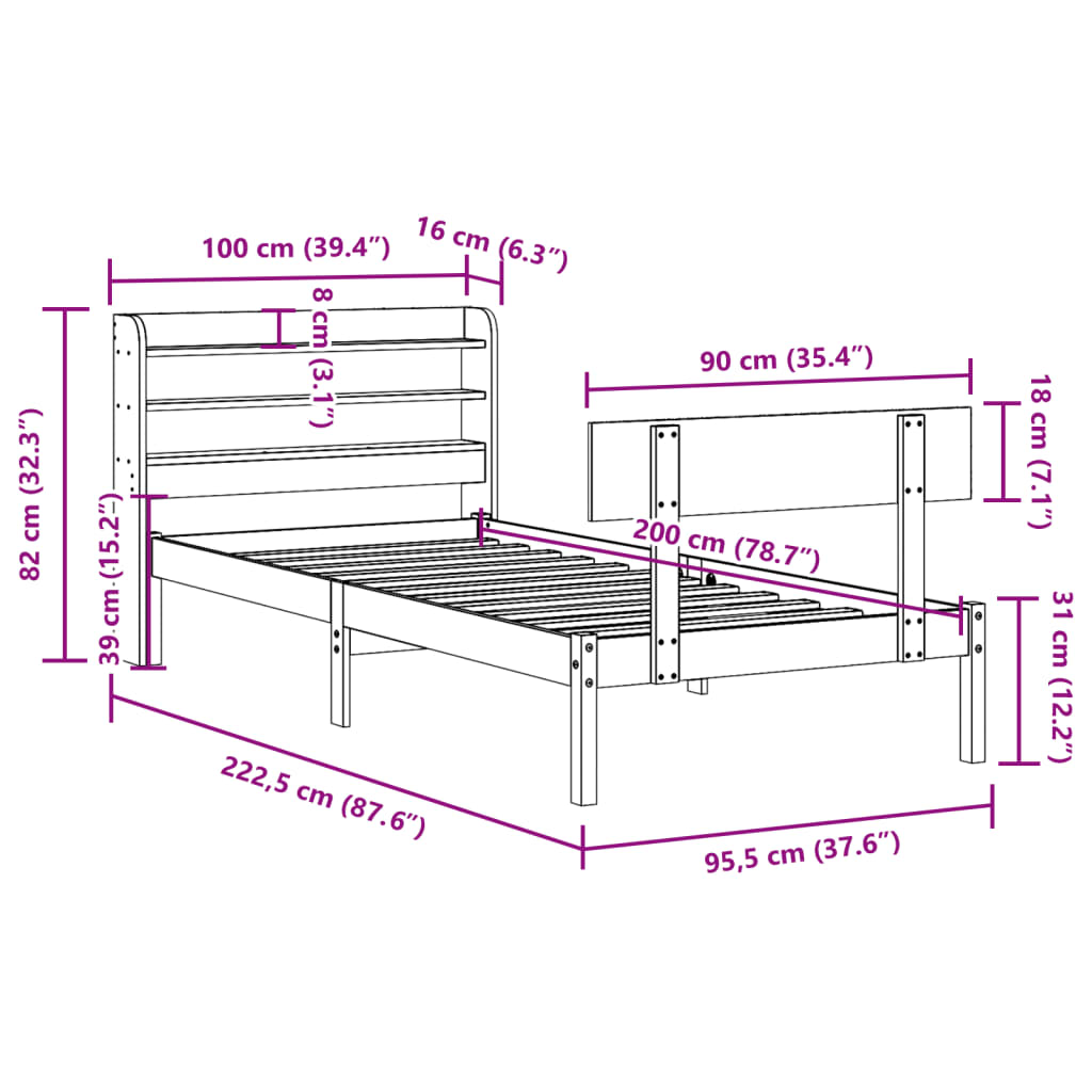 Genießen Sie einen erholsamen Schlaf in diesem Holzbett! Es wird eine praktische und dekorative Ergänzung zu Ihrem Interieur sein. Massives Kiefernholz: Massives Kiefernholz ist ein wunderschönes Naturmaterial. Kiefernholz weist eine gerade Maserung auf und die Aststellen verleihen dem Material seine charakteristische, rustikale Optik.Praktische Latten: Die Latten sorgen für eine gute Gewichtsverteilung sowie eine gute Unterstützung der Matratze, während ihre Atmungsaktivität nicht beeinträchtigt wird.Reichlich Stauraum: Das elegante Kopfteil des Bettes verfügt über zwei praktische Ablagen, die reichlich Stauraum bieten, um wichtige Sachen nachts griffbereit zu halten.Freistehend: Das freistehende Kopfteil lässt sich mühelos anbringen und bei Bedarf umstellen, ohne eine Befestigung an der Wand zu erfordern. Gut zu wissen: Bei diesem Bett ist keine Matratze im Lieferumfang enthalten. Wir bieten jedoch eine große Auswahl an Matratzen an. Du kannst in unserem Shop nach einer passenden Matratze suchen.