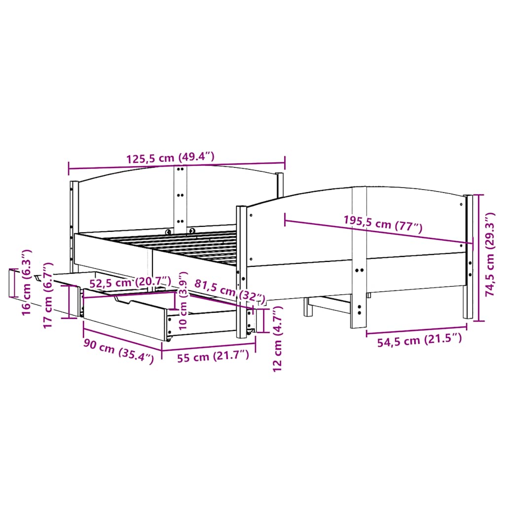 Mit diesem Bett wirst du einen besseren, erholsameren Schlaf genießen! Er ist eine einladende Ergänzung für jedes Schlafzimmer. Stabiles und langlebiges Gestell: Massives Kiefernholz ist für seine Stärke und Haltbarkeit bekannt. Seine gerade Maserung und die charakteristischen Aststellen tragen zu seinem rustikalen Charme bei.Lattenrost für optimale Unterstützung: Der Bettrahmen ist mit einem Lattenrost ausgestattet, der deine Matratze stützt und atmungsaktiv hält.Vielseitiges Kopfteil: Dieses Bettgestell ist mit einem Kopfteil versehen, das als komfortable Rückenstütze beim Lesen oder Fernsehen und gleichzeitig als dekoratives Element dient.Optimale Ausnutzung des Raumes: Dieser Bettrahmen verfügt über zwei Schubladen, in denen du Sachen wie zusätzliches Bettzeug, saisonale Kleidung und Spielzeug aufbewahren kannst.Leichtgängig: Dank der vier Rollen lässt sich die Unterbettschublade mühelos hineinschieben und herausziehen. Gut zu wissen:Bei diesem Bett ist keine Matratze im Lieferumfang enthalten. Wir bieten jedoch eine große Auswahl an Matratzen an. Du kannst in unserem Shop nach einer passenden Matratze suchen.