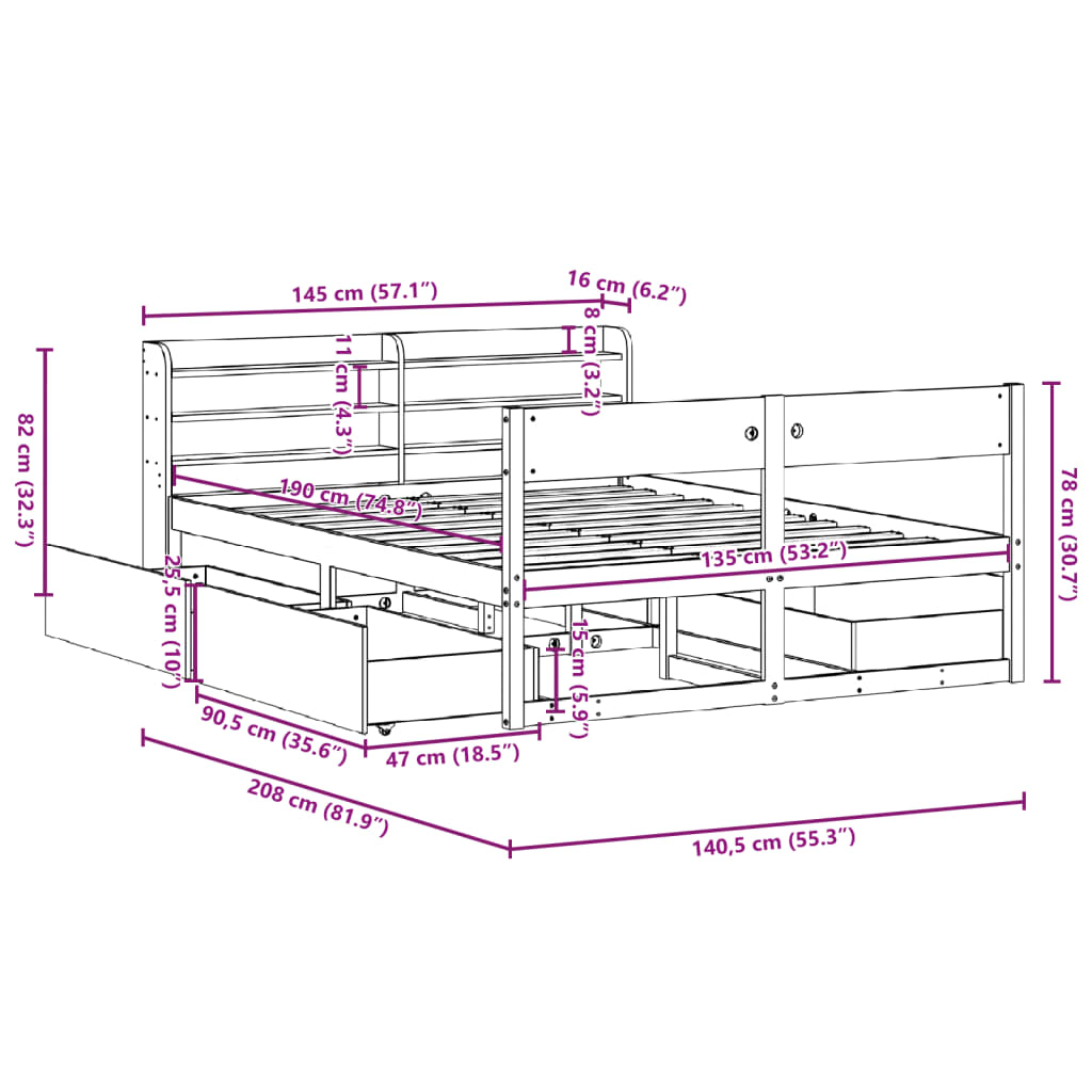 Mit diesem Bett wirst du einen besseren, erholsameren Schlaf genießen! Er ist eine einladende Ergänzung für jedes Schlafzimmer. Stabiles und langlebiges Gestell: Massives Kiefernholz ist für seine Stärke und Haltbarkeit bekannt. Seine gerade Maserung und die charakteristischen Aststellen tragen zu seinem rustikalen Charme bei.Lattenrost für optimale Unterstützung: Der Bettrahmen ist mit einem Lattenrost ausgestattet, der deine Matratze stützt und atmungsaktiv hält.Optimale Ausnutzung des Raums: Dieser Bettrahmen verfügt über vier Schubladen, in denen du Sachen wie zusätzliches Bettzeug, saisonale Kleidung und Spielzeug aufbewahren kannst.Reichlich Stauraum: Das elegante Kopfteil des Bettes verfügt über drei praktische Ablagen, die reichlich Stauraum bieten, um wichtige Sachen nachts griffbereit zu halten.Freistehend: Das freistehende Kopfteil lässt sich mühelos anbringen und bei Bedarf umstellen, ohne eine Befestigung an der Wand zu erfordern. Gut zu wissen:Bei diesem Bett ist keine Matratze im Lieferumfang enthalten. Wir bieten jedoch eine große Auswahl an Matratzen an. Du kannst in unserem Shop nach einer passenden Matratze suchen.