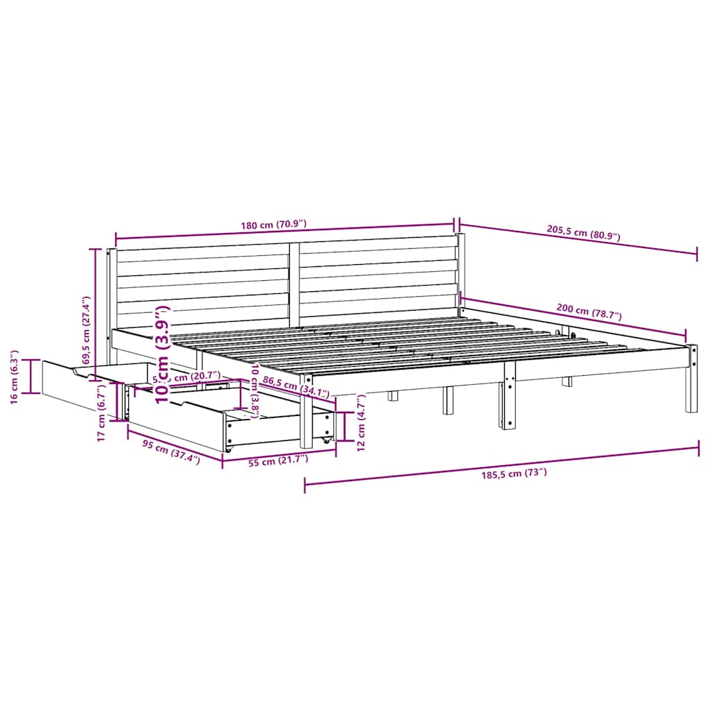 Mit diesem Bett wirst du einen besseren, erholsameren Schlaf genießen! Er ist eine einladende Ergänzung für jedes Schlafzimmer. Stabiles und langlebiges Gestell: Massives Kiefernholz ist für seine Stärke und Haltbarkeit bekannt. Seine gerade Maserung und die charakteristischen Aststellen tragen zu seinem rustikalen Charme bei.Lattenrost für optimale Unterstützung: Der Bettrahmen ist mit einem Lattenrost ausgestattet, der deine Matratze stützt und atmungsaktiv hält.Optimale Ausnutzung des Raumes: Dieser Bettrahmen verfügt über zwei Schubladen, in denen du Sachen wie zusätzliches Bettzeug, saisonale Kleidung und Spielzeug aufbewahren kannst.Leichtgängig: Dank der vier Rollen lässt sich die Unterbettschublade mühelos hineinschieben und herausziehen. Gut zu wissen:Bei diesem Bett ist keine Matratze im Lieferumfang enthalten. Wir bieten jedoch eine große Auswahl an Matratzen an. Du kannst in unserem Shop nach einer passenden Matratze suchen.