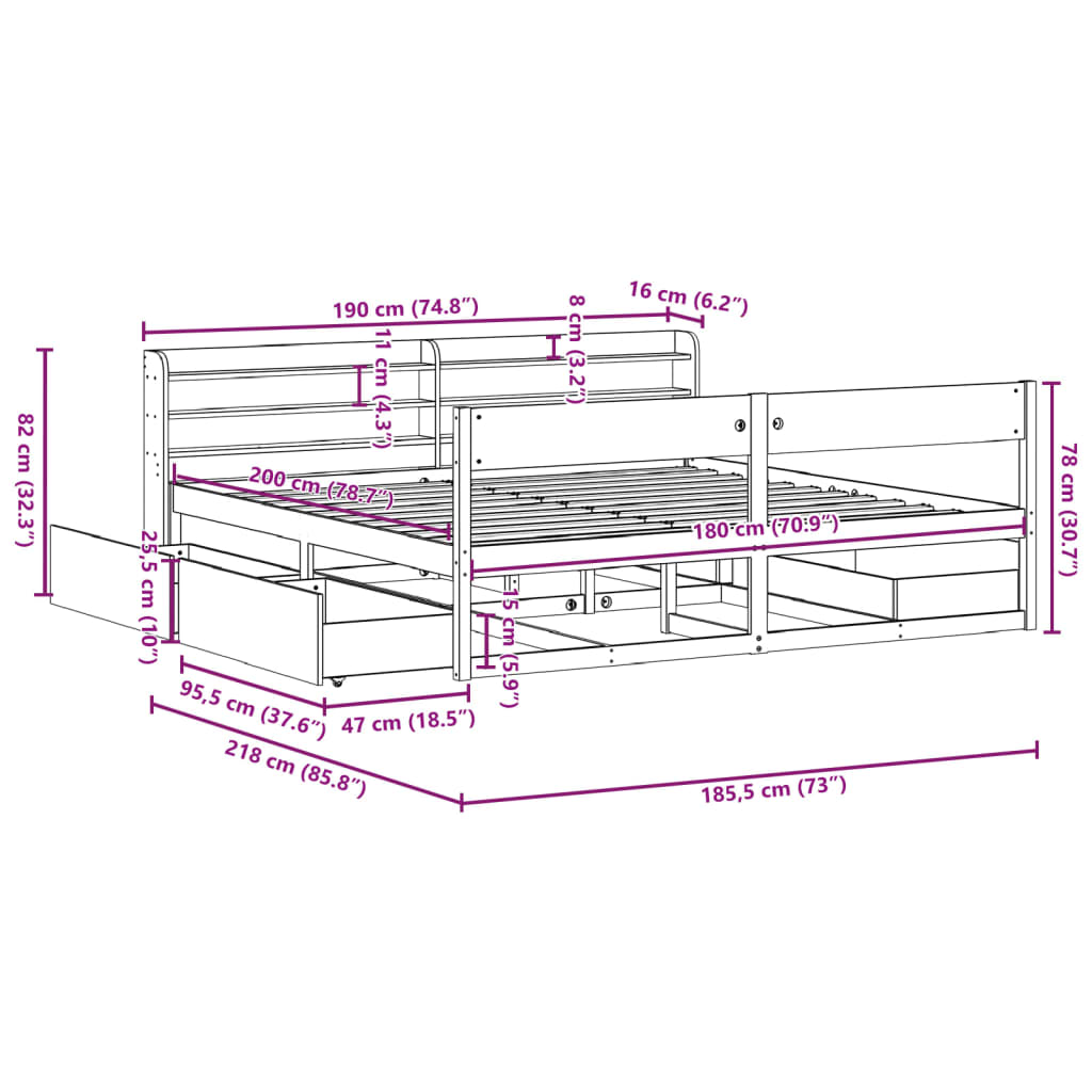 Mit diesem Bett wirst du einen besseren, erholsameren Schlaf genießen! Er ist eine einladende Ergänzung für jedes Schlafzimmer. Stabiles und langlebiges Gestell: Massives Kiefernholz ist für seine Stärke und Haltbarkeit bekannt. Seine gerade Maserung und die charakteristischen Aststellen tragen zu seinem rustikalen Charme bei.Lattenrost für optimale Unterstützung: Der Bettrahmen ist mit einem Lattenrost ausgestattet, der deine Matratze stützt und atmungsaktiv hält.Optimale Ausnutzung des Raums: Dieser Bettrahmen verfügt über vier Schubladen, in denen du Sachen wie zusätzliches Bettzeug, saisonale Kleidung und Spielzeug aufbewahren kannst.Reichlich Stauraum: Das elegante Kopfteil des Bettes verfügt über drei praktische Ablagen, die reichlich Stauraum bieten, um wichtige Sachen nachts griffbereit zu halten.Freistehend: Das freistehende Kopfteil lässt sich mühelos anbringen und bei Bedarf umstellen, ohne eine Befestigung an der Wand zu erfordern. Gut zu wissen:Bei diesem Bett ist keine Matratze im Lieferumfang enthalten. Wir bieten jedoch eine große Auswahl an Matratzen an. Du kannst in unserem Shop nach einer passenden Matratze suchen.