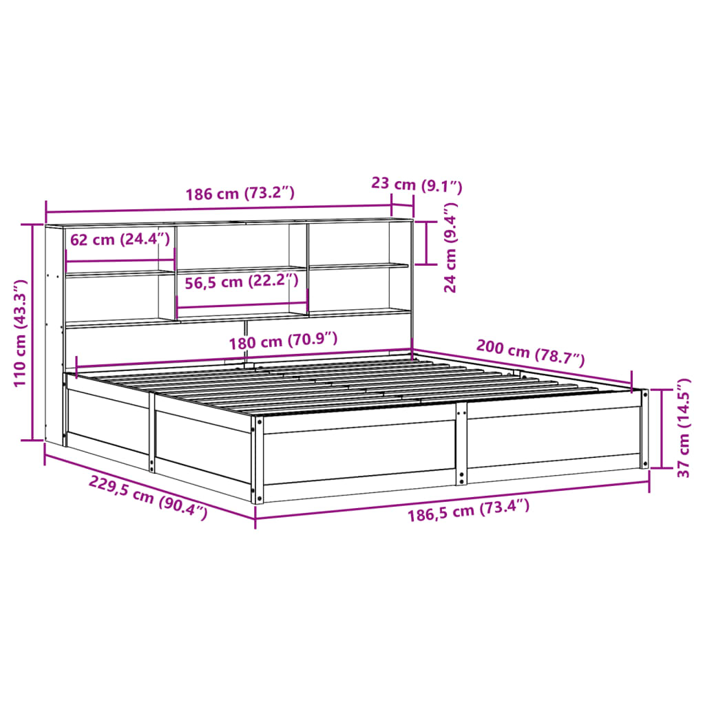 Genießen Sie einen erholsamen Schlaf in diesem Holzbett! Es wird eine praktische und dekorative Ergänzung zu Ihrem Interieur sein. Massives Kiefernholz: Massives Kiefernholz ist ein wunderschönes Naturmaterial. Kiefernholz weist eine gerade Maserung auf und die Aststellen verleihen dem Material seine charakteristische, rustikale Optik.Stabil: Der Holzrahmen sorgt für Robustheit und Stabilität. Robuste Latten: Die Sperrholzlatten sorgen für eine gute Gewichtsverteilung und auch dafür, dass die Matratze bei jeder Bewegung Ihres Körpers während des Schlafes an Ort und Stelle bleibt.Platzsparend: Dieses Kopfteil bietet eine platzsparende Alternative zu üblichen Nachttischen. Es schafft zusätzlichen Stauraum im Schlafzimmer und ist eine ideale Wahl für kleine oder begrenzte Räume.Praktisches Kopfteil: Das Kopfteil des Holzbettes hält Ihre Matratze an Ort und Stelle. Außerdem ist es eine hervorragende Rückenlehne beim Lesen oder Fernsehen im Bett.Reichlich Stauraum: Das elegante Kopfteil verfügt über sechs praktische Fächer, die reichlich Platz bieten, um wichtige Sachen griffbereit zu halten. Gut zu wissen:Bei diesem Bett ist keine Matratze im Lieferumfang enthalten. Wir bieten jedoch eine große Auswahl an Matratzen an. Du kannst in unserem Shop nach einer passenden Matratze suchen.