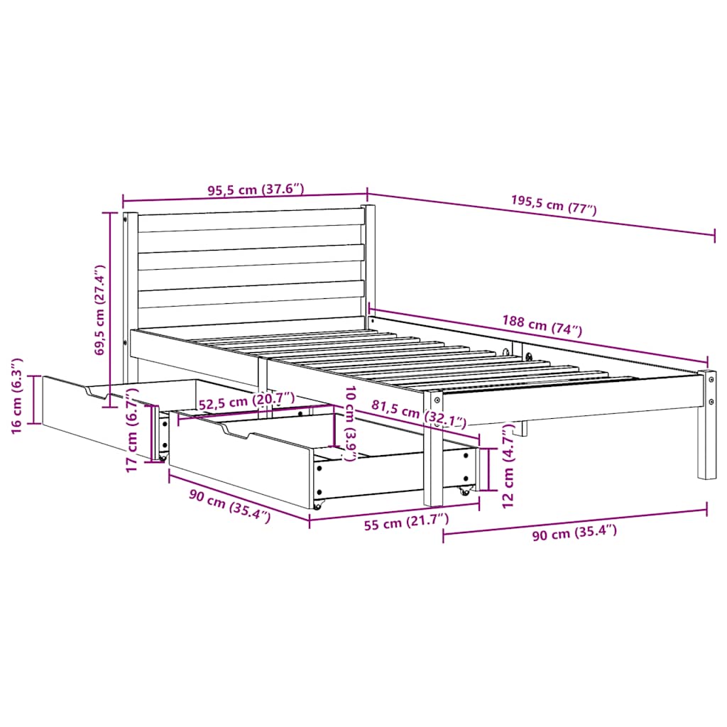 - Geeignete Matratzengröße: 90 x 190 cm (B x L) (Matratze nicht enthalten)
