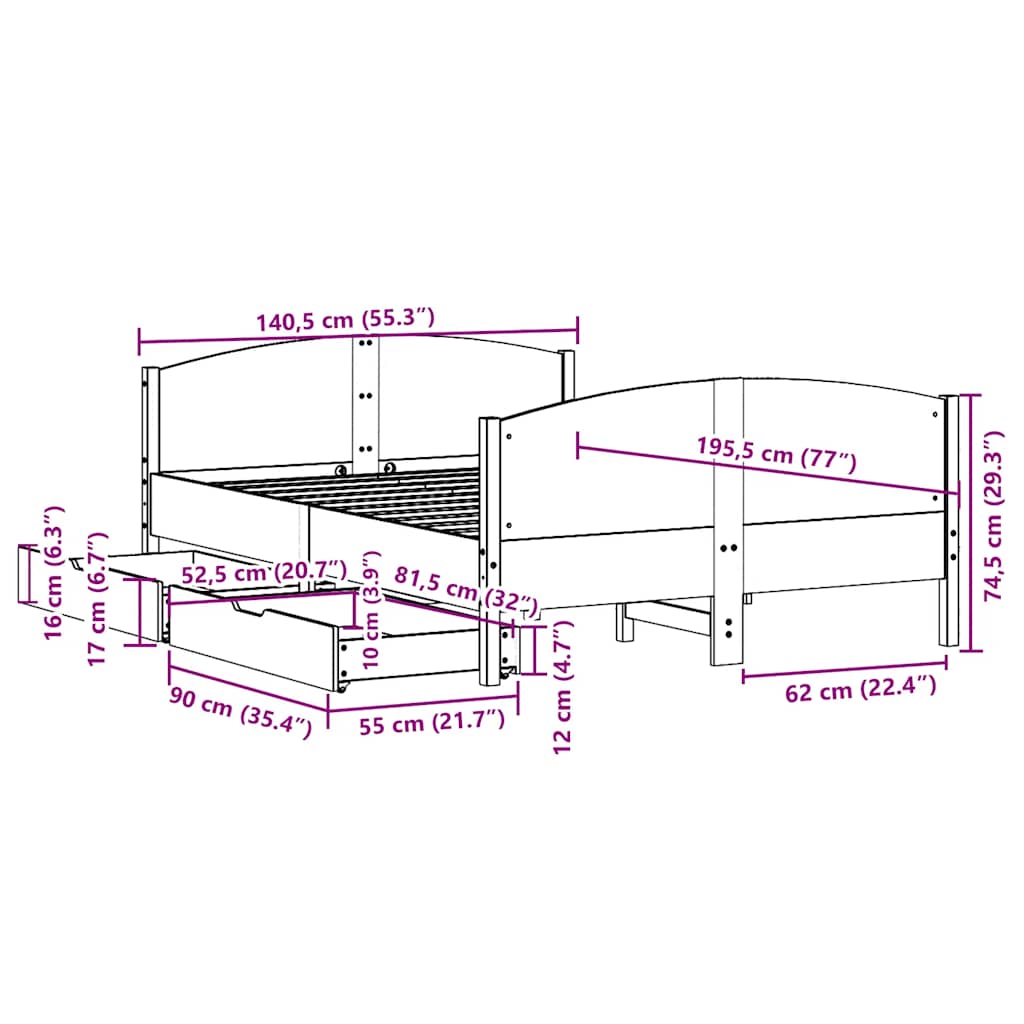 Mit diesem Bett wirst du einen besseren, erholsameren Schlaf genießen! Er ist eine einladende Ergänzung für jedes Schlafzimmer. Stabiles und langlebiges Gestell: Massives Kiefernholz ist für seine Stärke und Haltbarkeit bekannt. Seine gerade Maserung und die charakteristischen Aststellen tragen zu seinem rustikalen Charme bei.Lattenrost für optimale Unterstützung: Der Bettrahmen ist mit einem Lattenrost ausgestattet, der deine Matratze stützt und atmungsaktiv hält.Vielseitiges Kopfteil: Dieses Bettgestell ist mit einem Kopfteil versehen, das als komfortable Rückenstütze beim Lesen oder Fernsehen und gleichzeitig als dekoratives Element dient.Optimale Ausnutzung des Raumes: Dieser Bettrahmen verfügt über zwei Schubladen, in denen du Sachen wie zusätzliches Bettzeug, saisonale Kleidung und Spielzeug aufbewahren kannst.Leichtgängig: Dank der vier Rollen lässt sich die Unterbettschublade mühelos hineinschieben und herausziehen. Gut zu wissen:Bei diesem Bett ist keine Matratze im Lieferumfang enthalten. Wir bieten jedoch eine große Auswahl an Matratzen an. Du kannst in unserem Shop nach einer passenden Matratze suchen.
